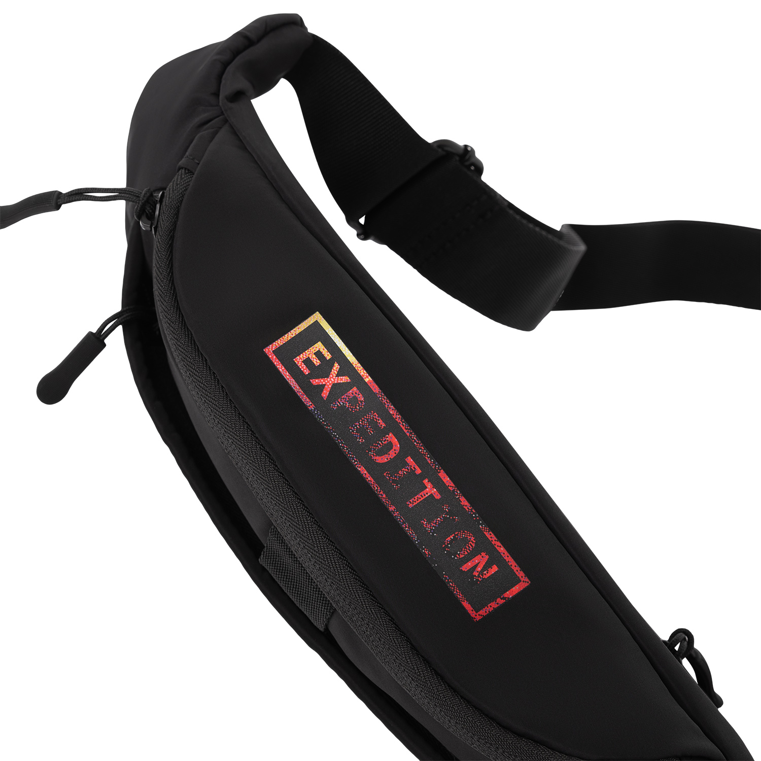 Поясная сумка изготовлена из прочного материала — полиэстер.