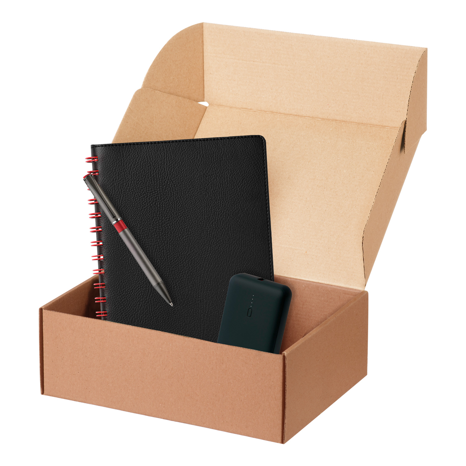 Подарочный набор Vista, черный/красный (ежедневник, ручка, аккумулятор)