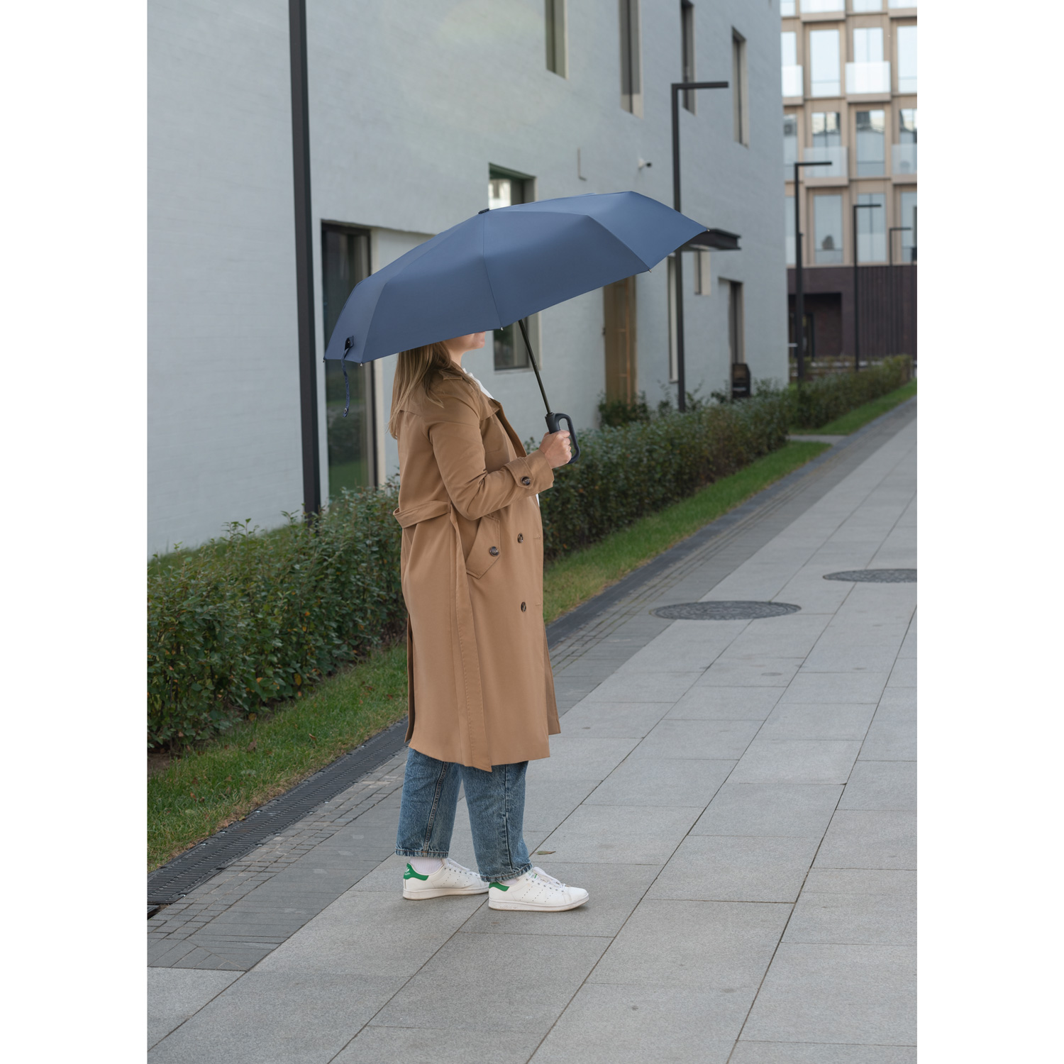 Надежный автоматический механизм в 3 сложения, 8 спиц из стеклопластика.—