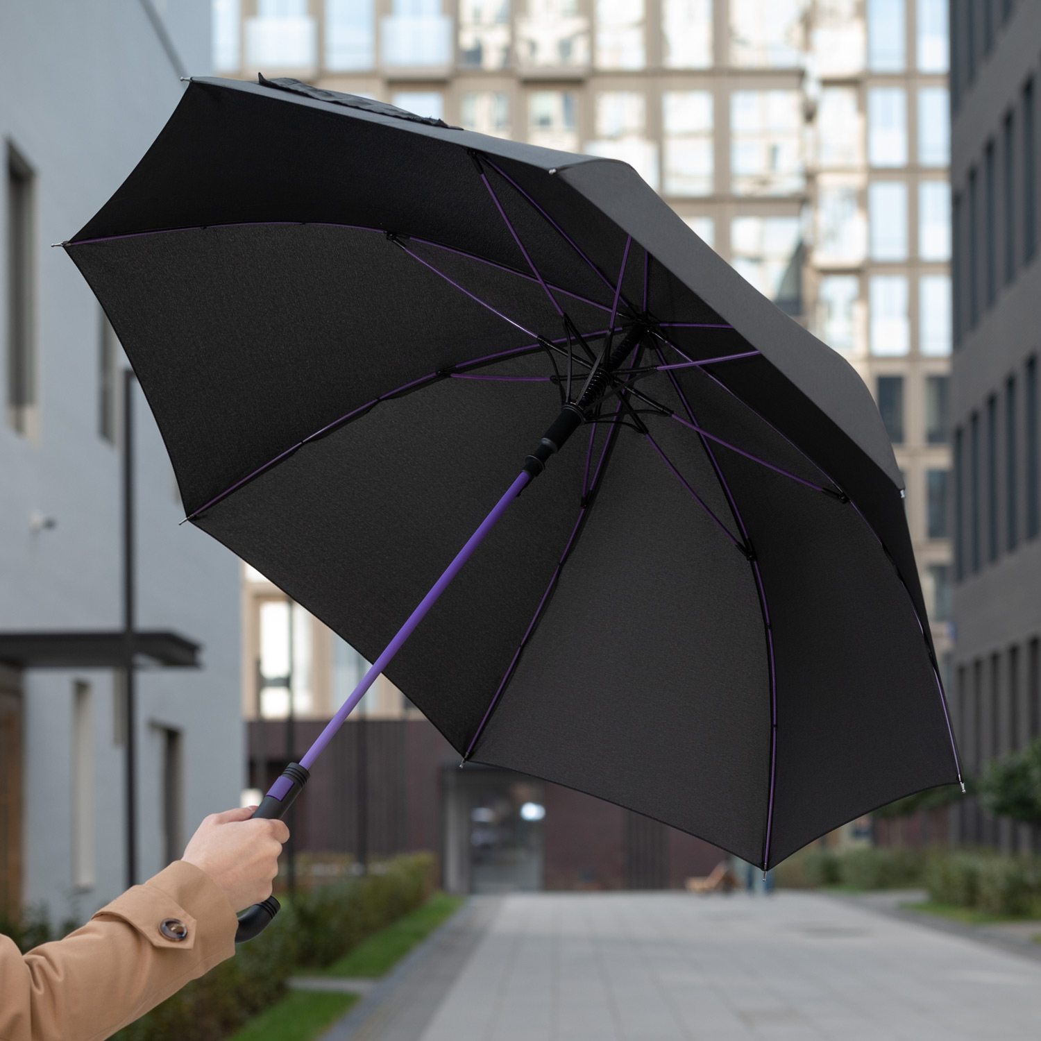 Зонт-трость Квантум (Quantum), черный/фиолетовый