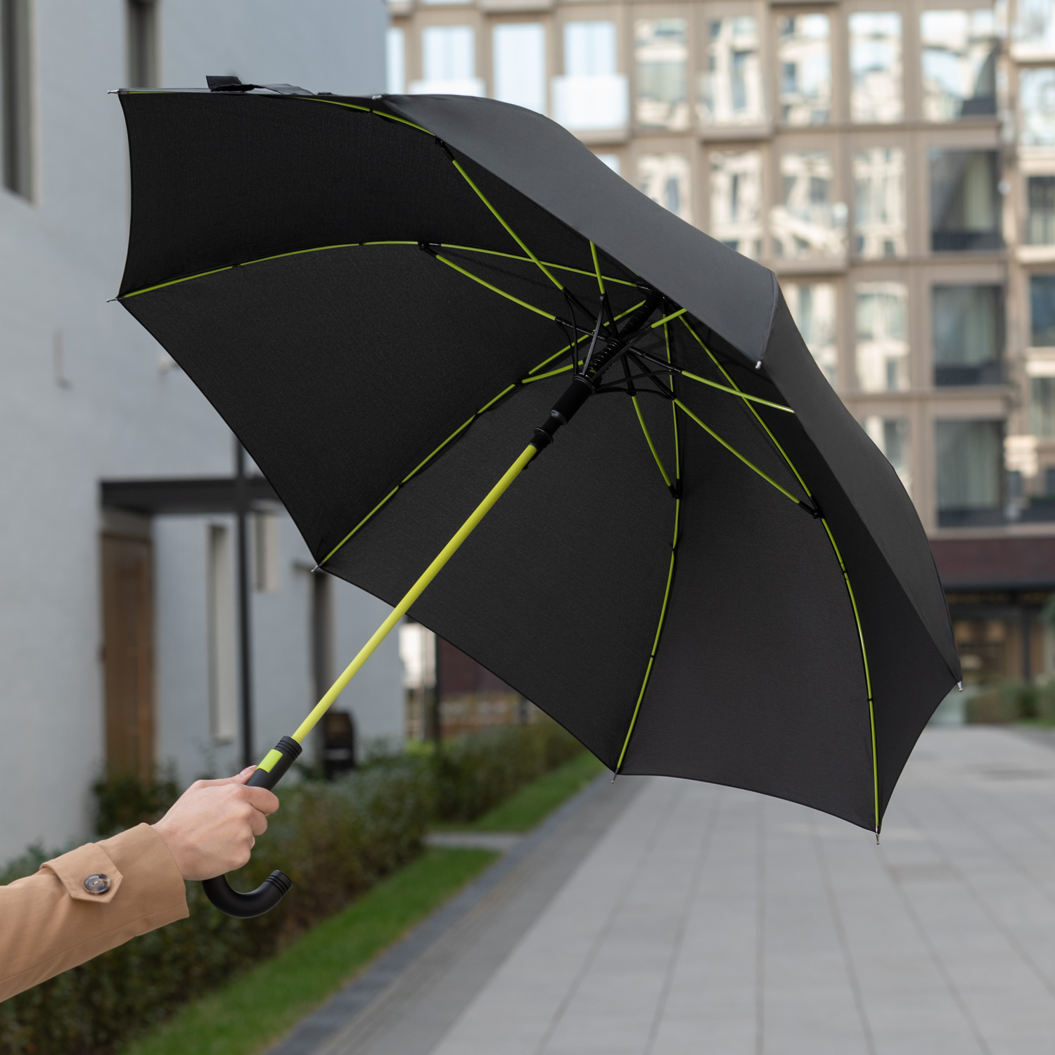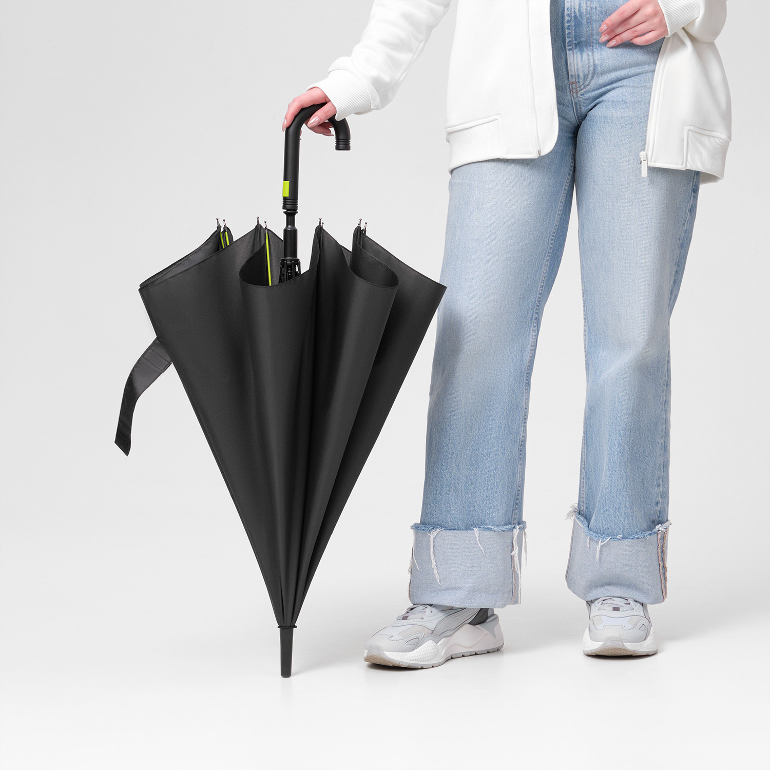 Зонт-трость Квантум (Quantum), черный/салатовый