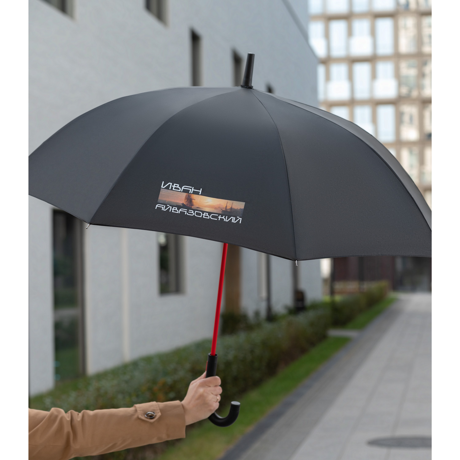 Зонт-трость Квантум (Quantum), черный/красный