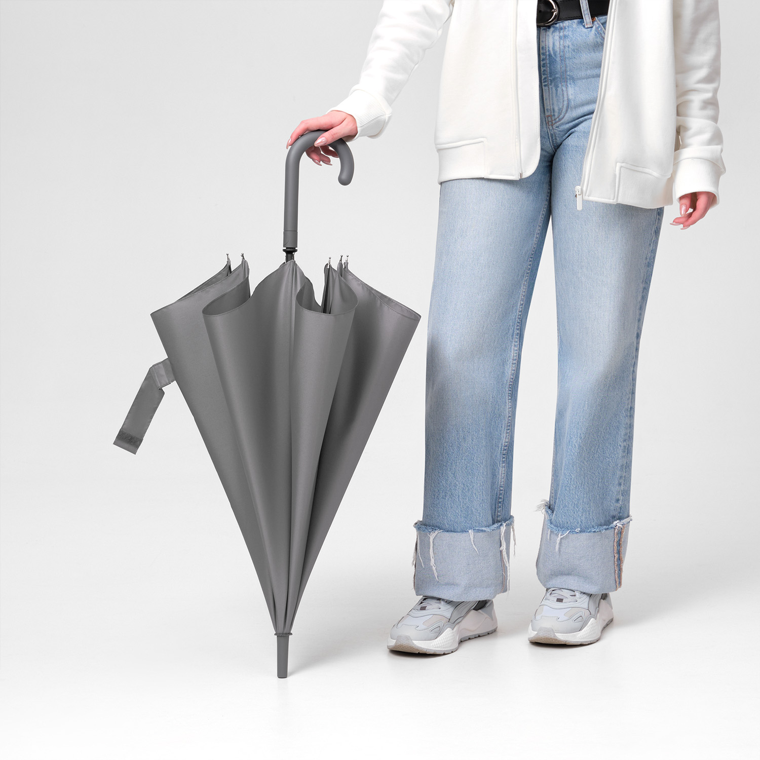 Удобная ручка в цвет купола зонта.