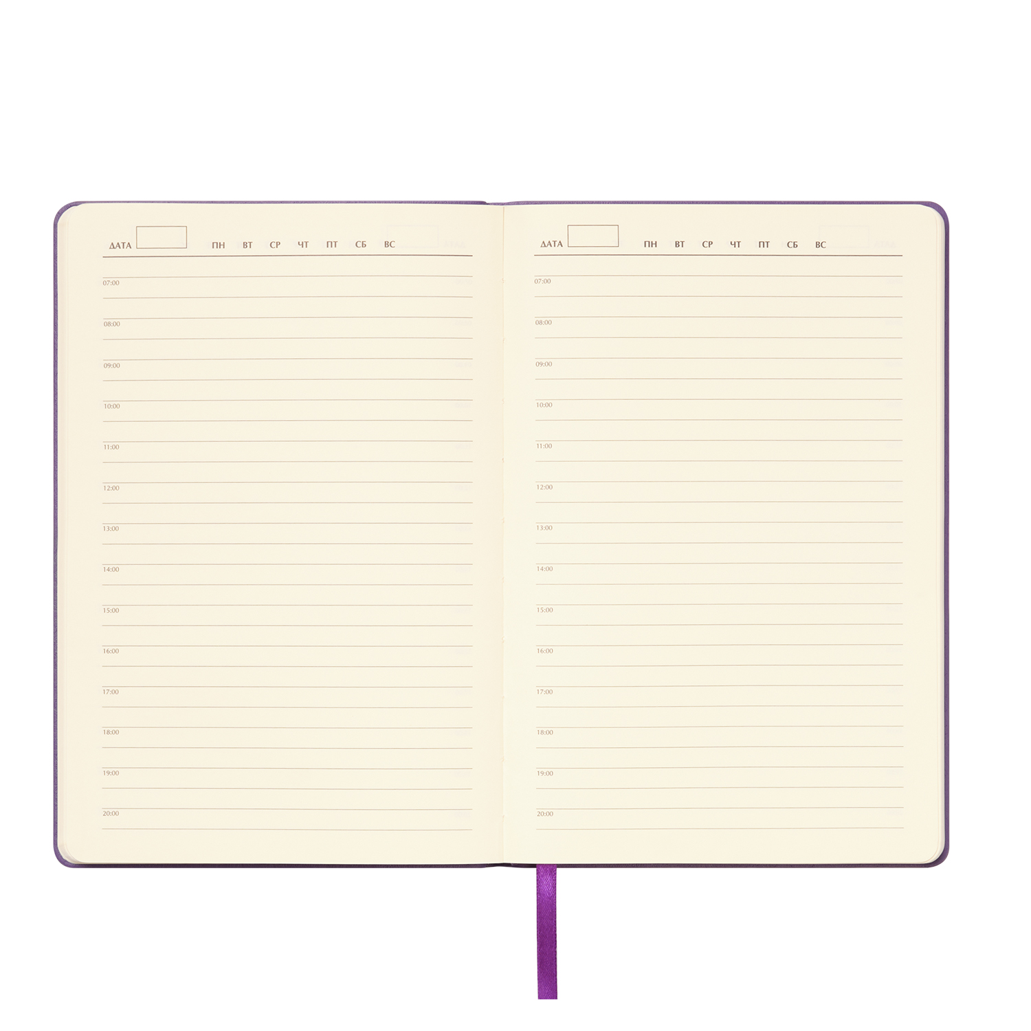 Недатированный ежедневник в гибкой обложке из качественной искусственной кожи со скругленными уголками. Покрытие с эффектом Soft Touch, гладкое, матовое, слегка припудренное, не блестит. Очень приятное на ощупь. Форзац,нахзац и срез кремового цвета. Страницы со скругленными уголками из гладкого шелковистого офсета, кремовые. Одинарное атласноеляссе 6 мм.