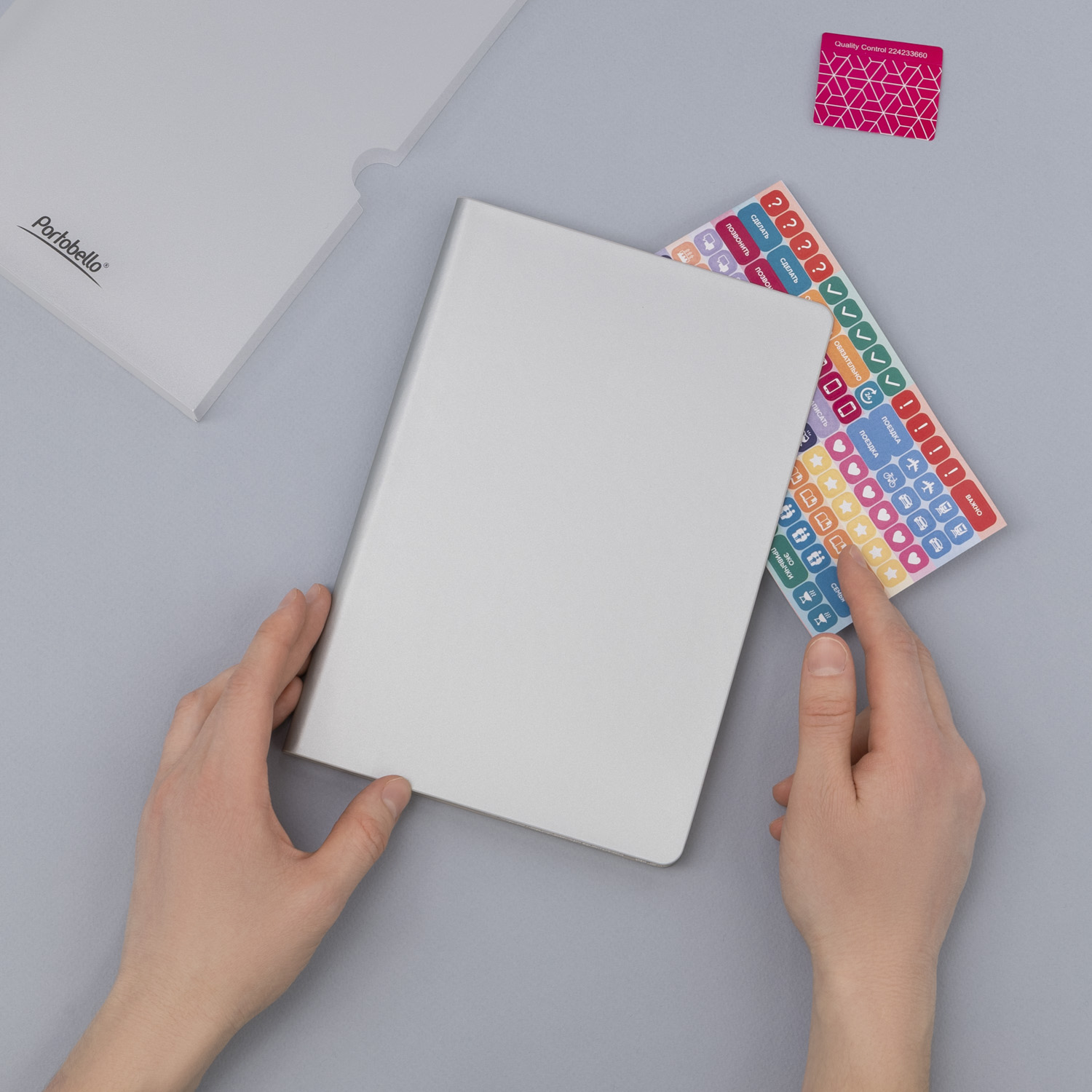 Ежедневник Spark недатированный, серебряный (с упаковкой, со стикерами)