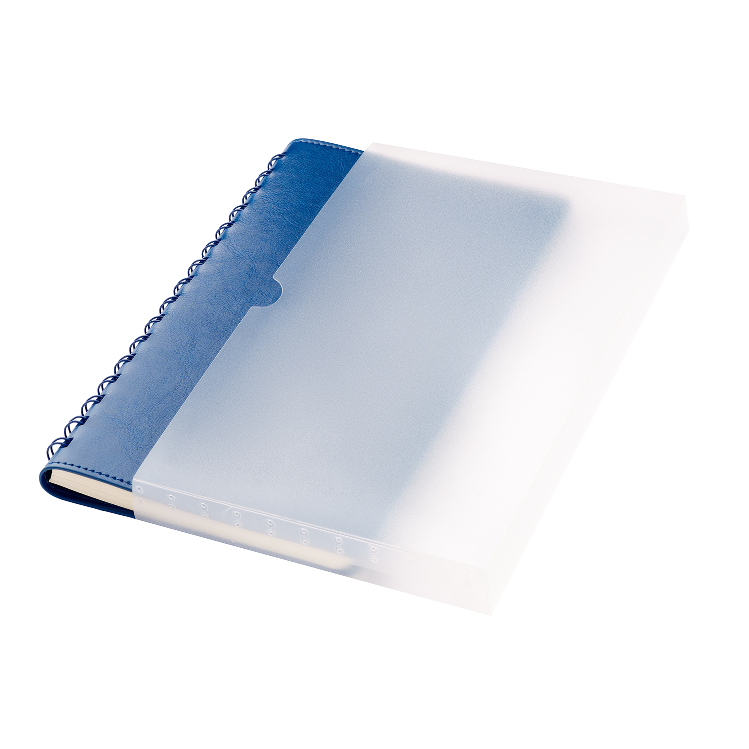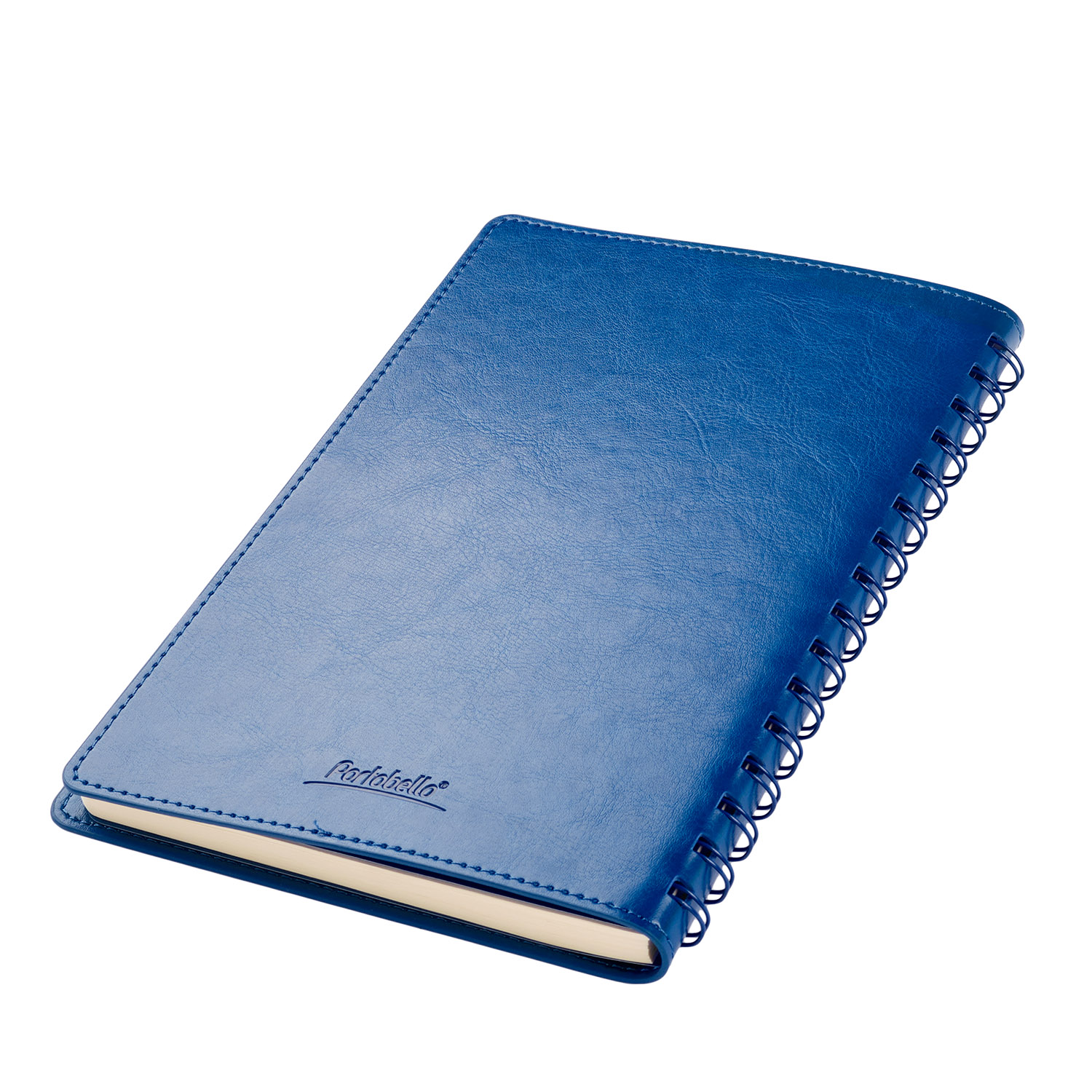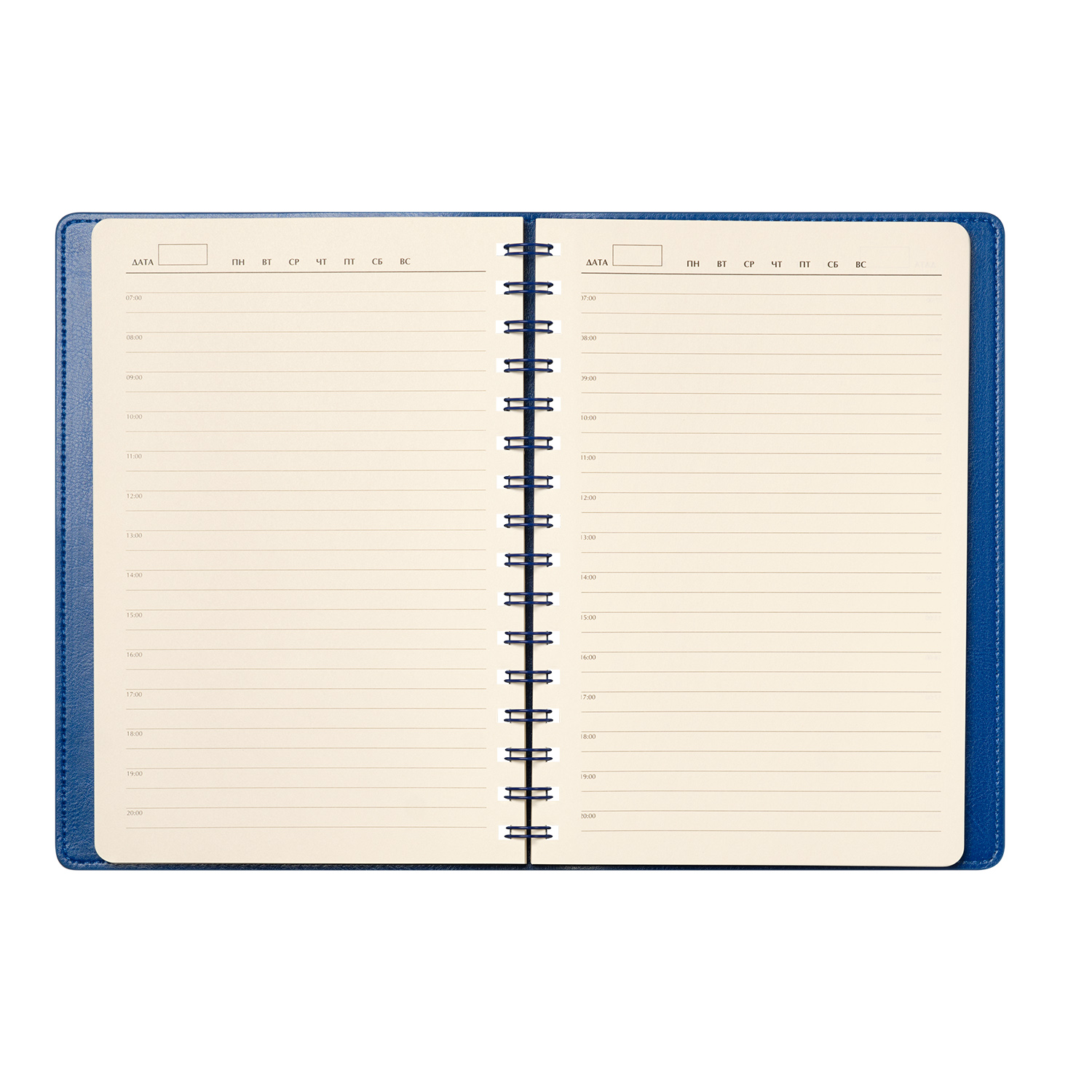 Недатированный ежедневник на пружине в гибкой обложке из качественной искусственной кожи. Обложка выполнена из сшивки двух материалов. Материал обложки гладкий, текстурированный, с полуглянцевым блеском. По периметру обложки выполнена прошивка в тон. Скругленные углы обложки и внутреннего блока. Ежедневник надежно скреплен полускрытой пружиной в цвет обложки. Страницы блока и срез кремовые. Форзац/нахзац - в цвет обложки.