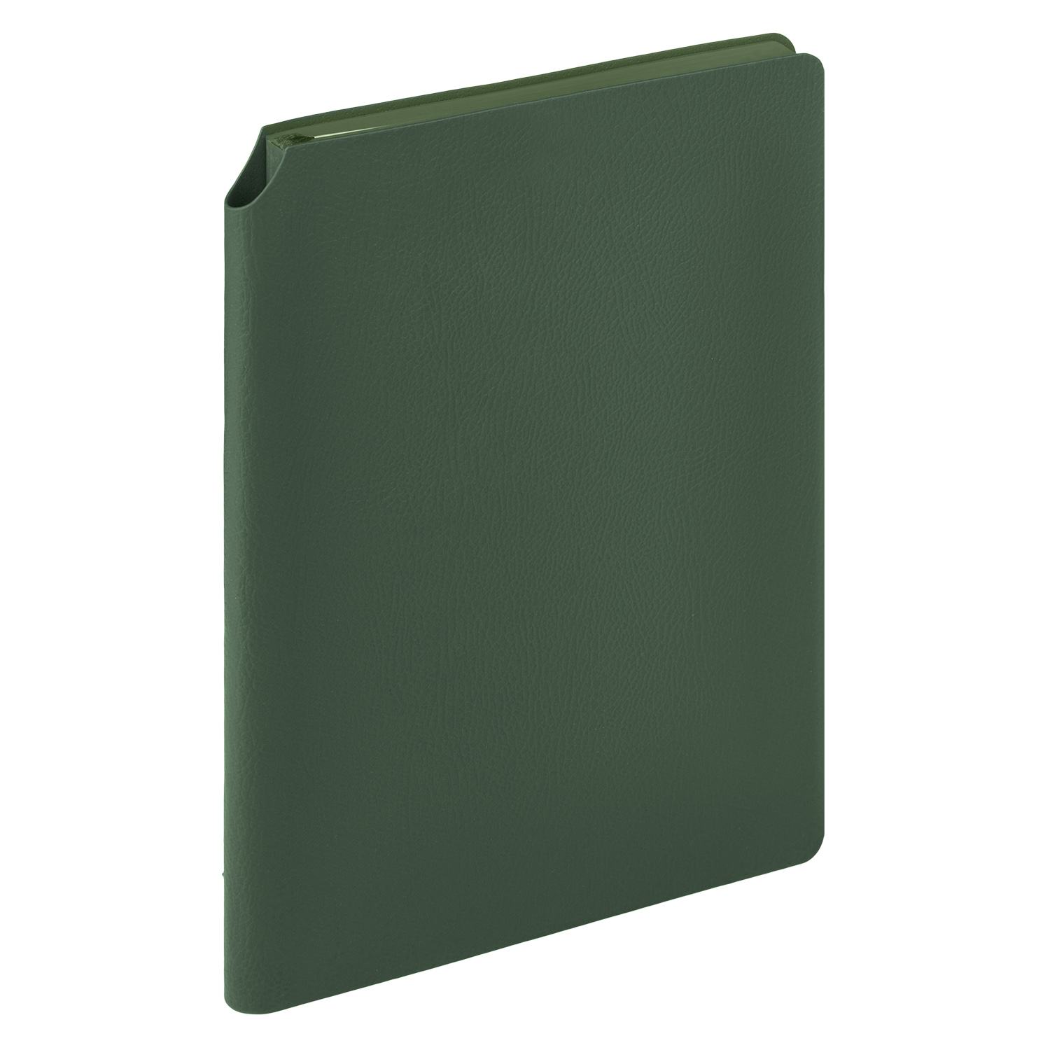 Недатированный ежедневник в гибкой обложке из качественной искусственной кожи. Материал обложки матовый, текстурированный,с некрупным рельефом под натуральную кожу. Скругленные углы обложки и внутреннего блока. Отличительная особенность коллекции — в верхнем углу на корешке расположен держатель для ручки. Форзац, нахзац и срез - в цвет обложки. Одинарное атласноеляссе 6 мм в цвет обложки.