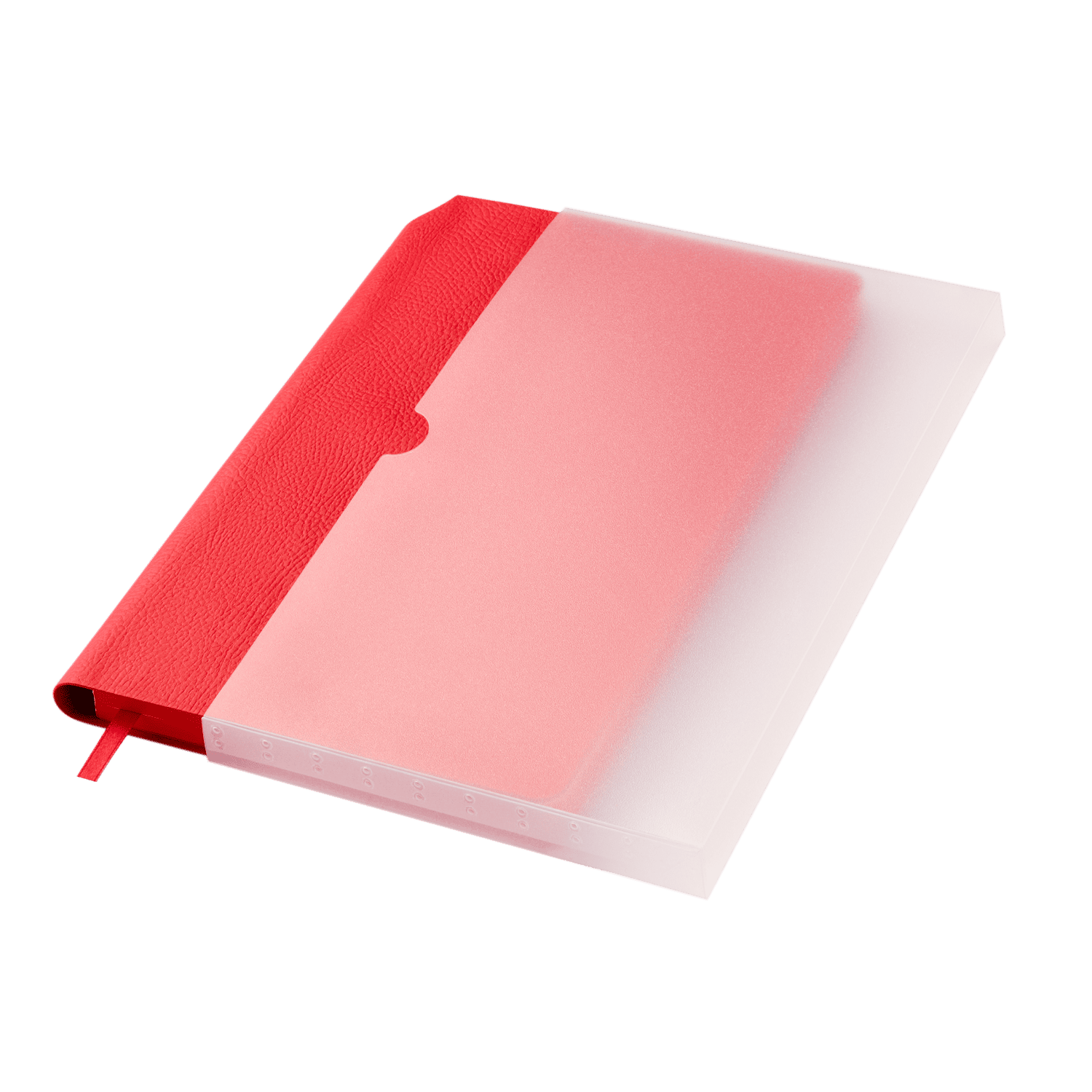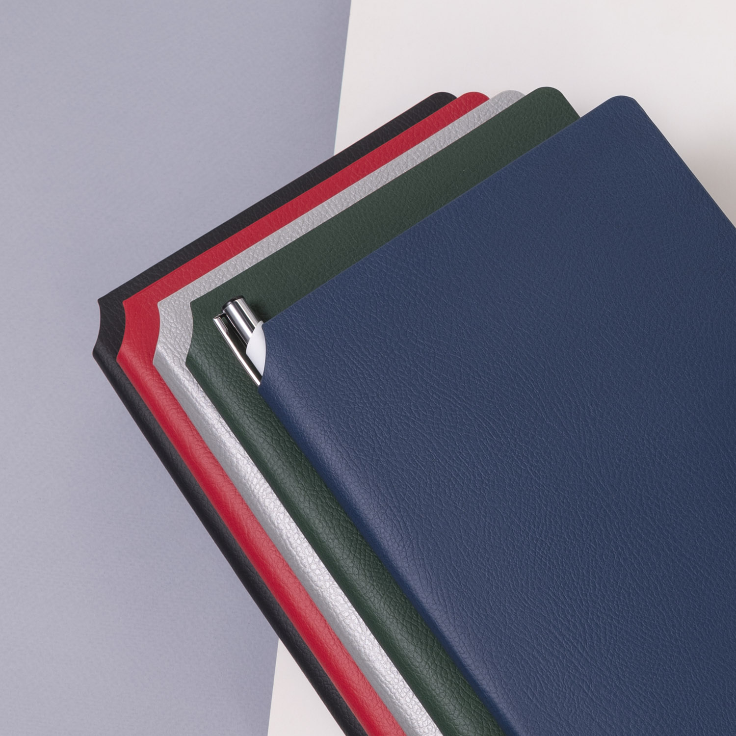 Недатированный ежедневник в гибкой обложке из качественной искусственной кожи. Материал обложки матовый, текстурированный,с некрупным рельефом под натуральную кожу. Скругленные углы обложки и внутреннего блока. Отличительная особенность коллекции — в верхнем углу на корешке расположен держатель для ручки. Форзац, нахзац и срез - в цвет обложки. Одинарное атласноеляссе 6 мм в цвет обложки.