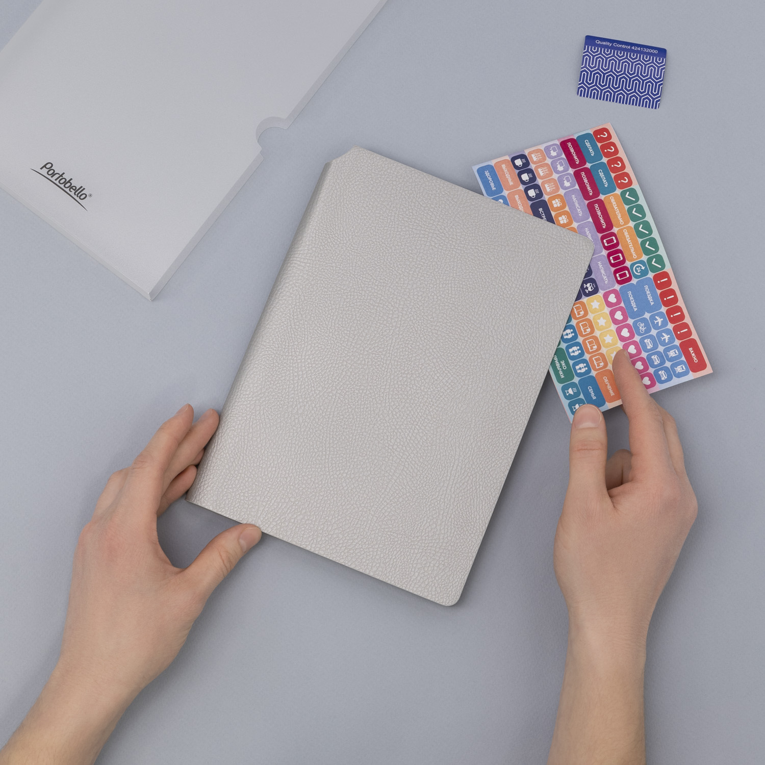 Форзац в цвет обложки,165 г/м2, лого Portobello, 5 сертификатов