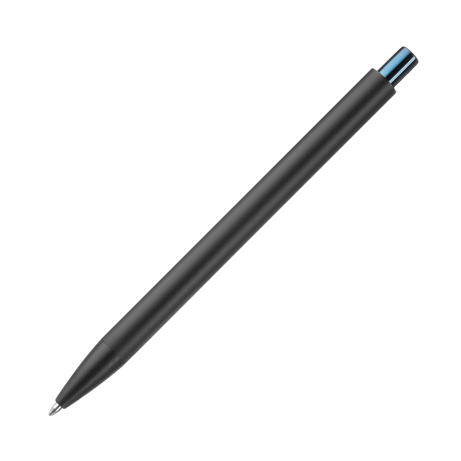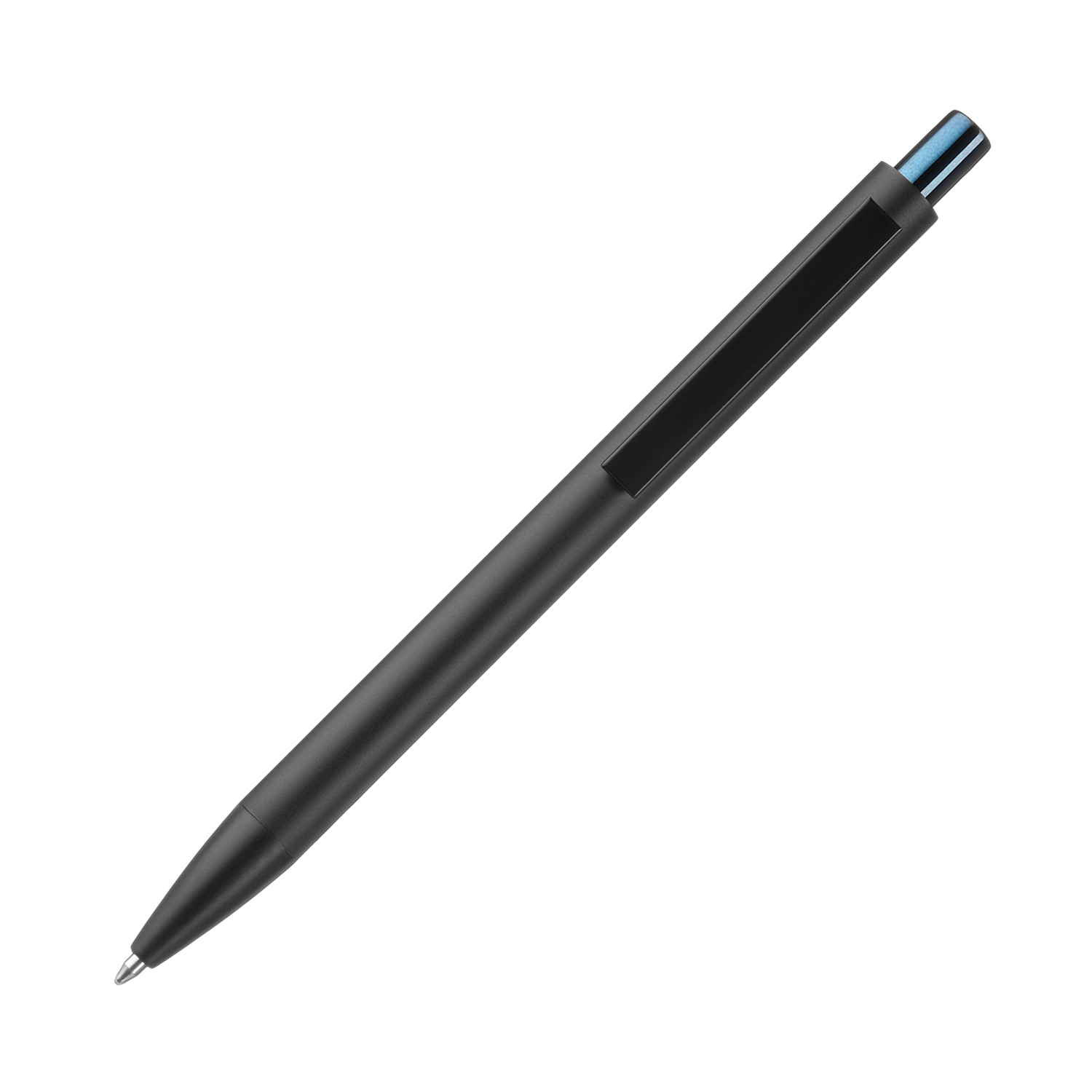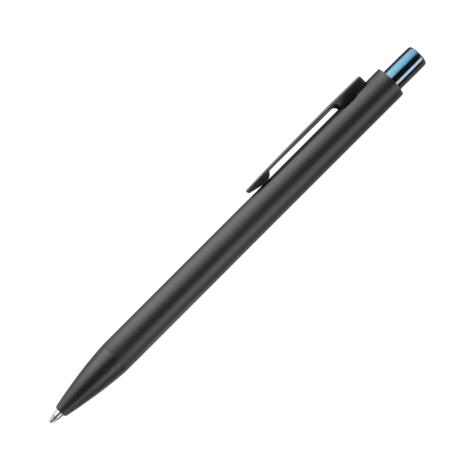 Классическая ручка в строгом черном корпусе и с черной фурнитурой. При гравировке на корпусе ручки она вскрывается в цвет нажимной кнопки.