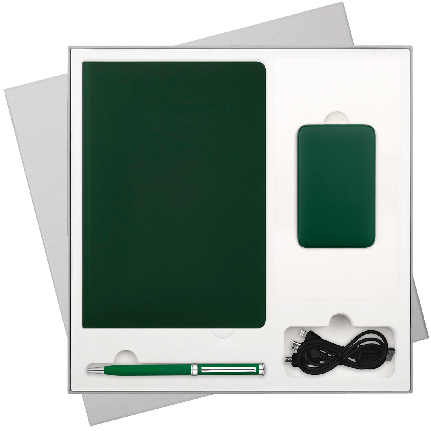 Подарочный набор Spark, зеленый (ежедневник, ручка, аккумулятор)