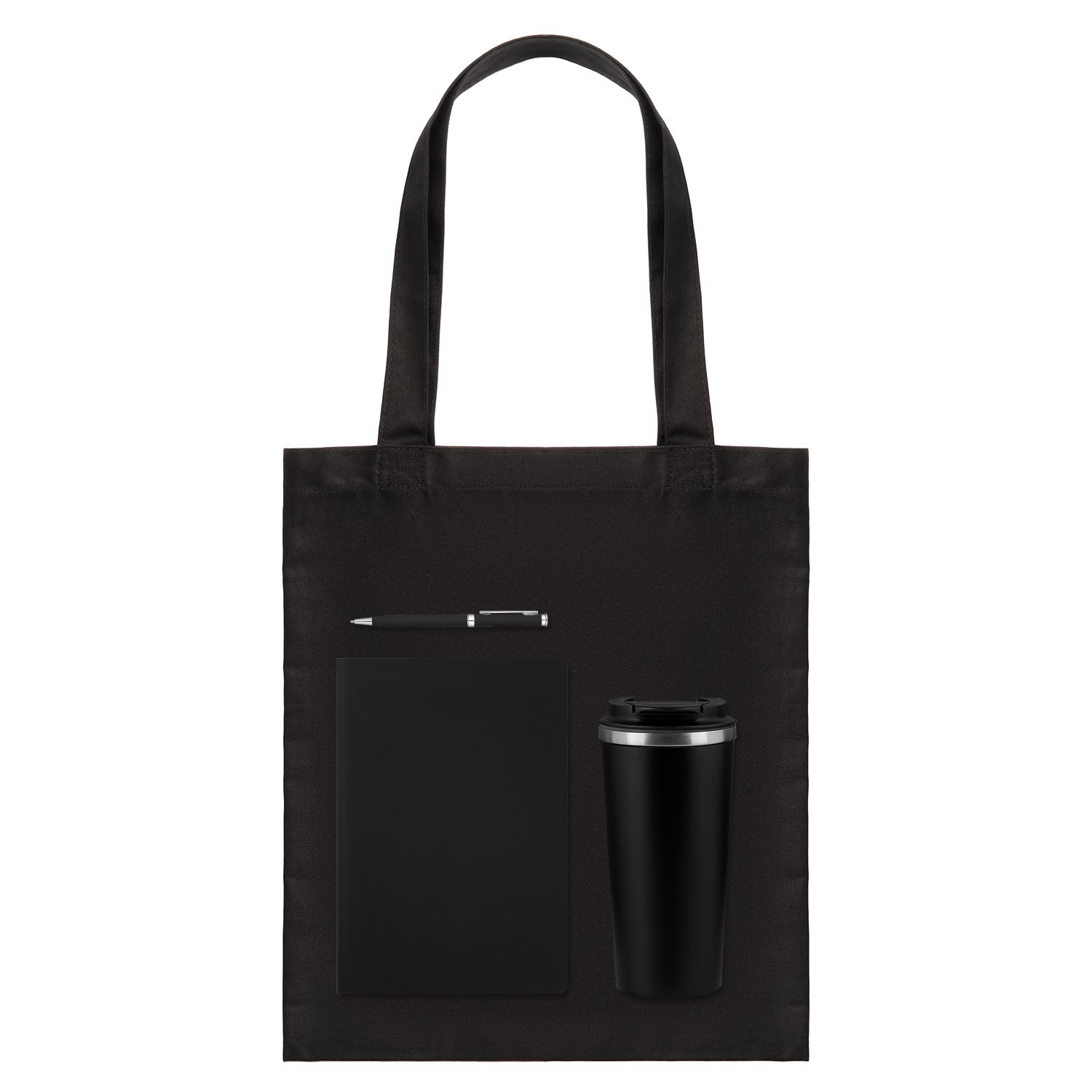 Подарочный набор Medium, черный (шоппер, ежедневник, ручка, термобутылка)