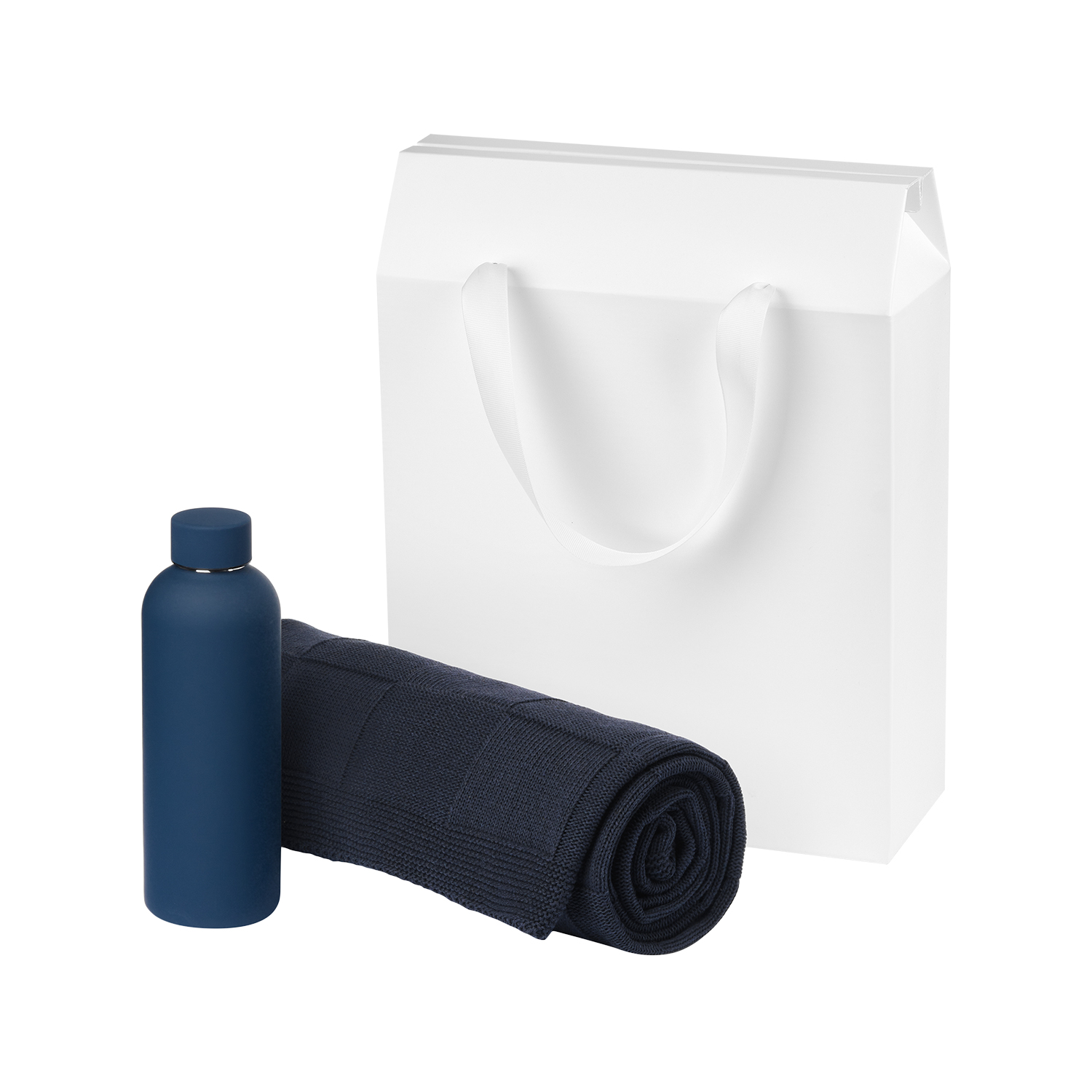 Подарочный набор Prima, синяя (термобутылка, плед)