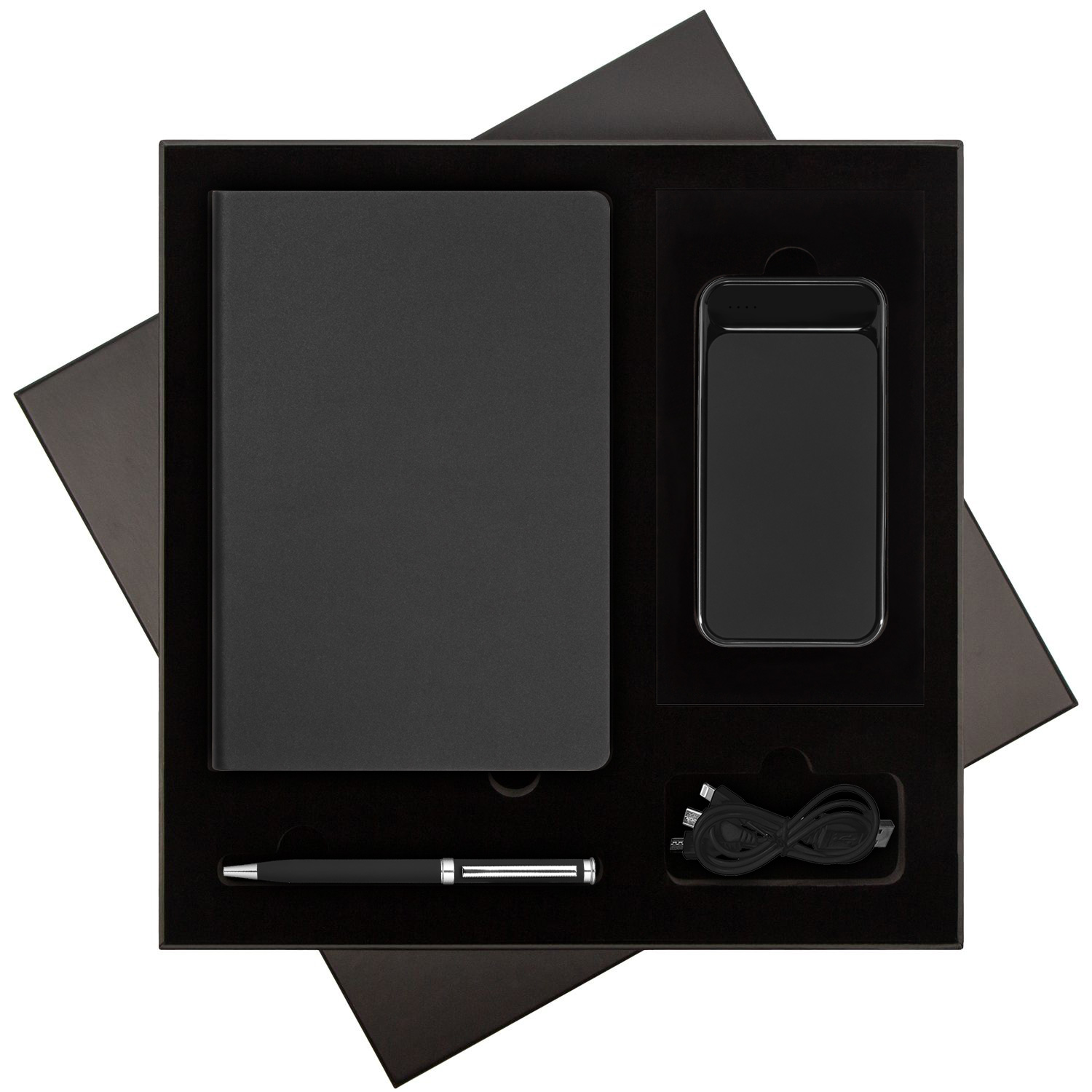 Подарочный набор Star, черный (ежедневник, ручка, аккумулятор)