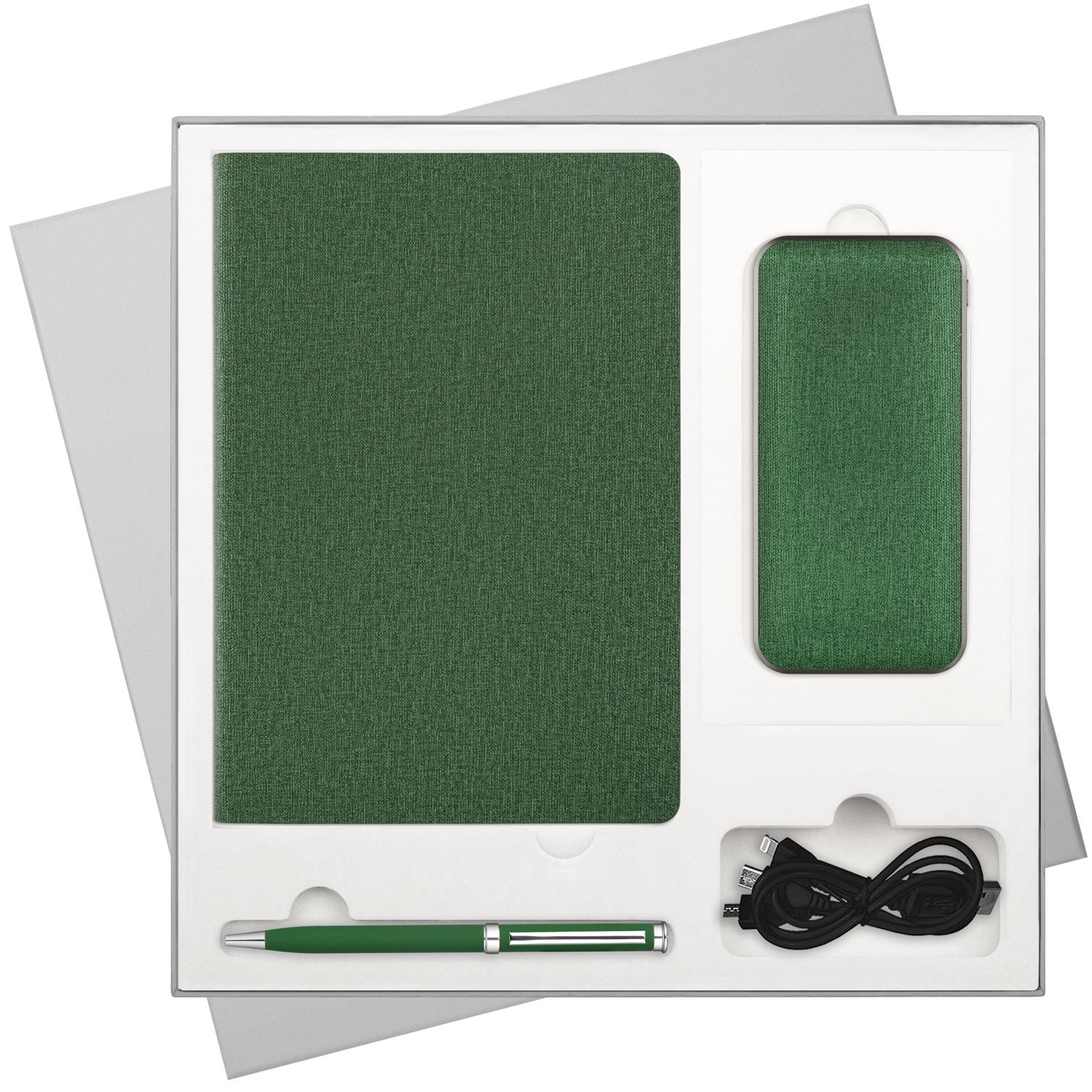 Подарочный набор Tweed, зеленый (ежедневник, ручка, аккумулятор)