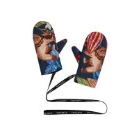 Верхняя ткань выполнена из непромокаемой курточной ткани, внутри флисовый подклад и утеплитель - холлофайбер. Температурный режим до -20 градусов. Варежки на ленте, как в детстве.