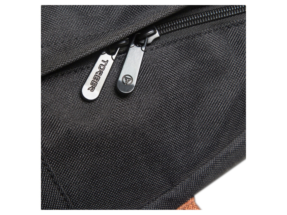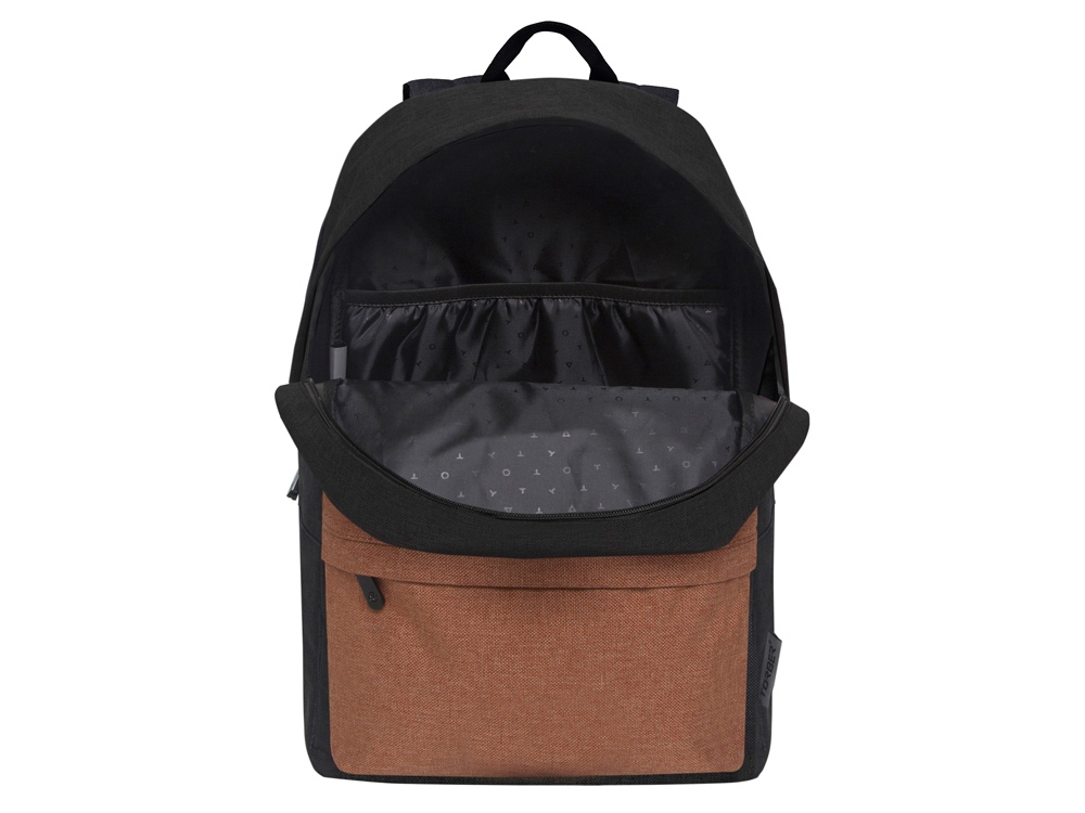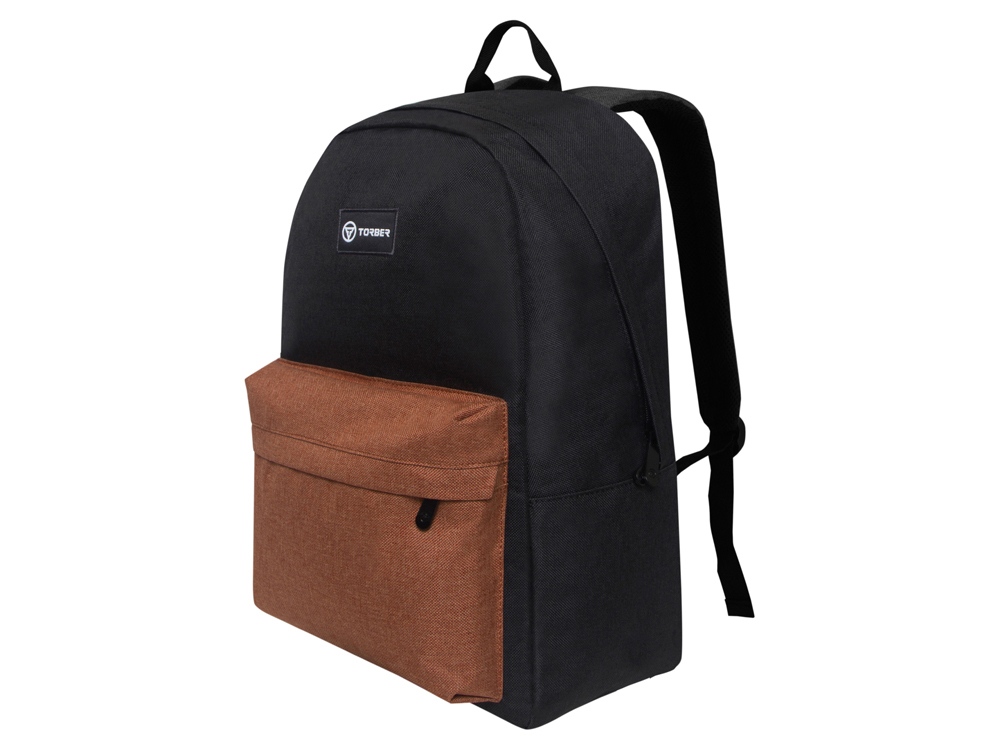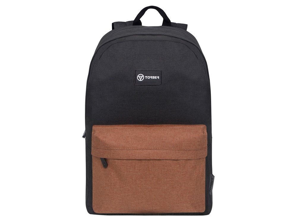 Рюкзак TORBER GRAFFI, черный с карманом коричневого цвета, полиэстер меланж, 42 х 29 x 19 см