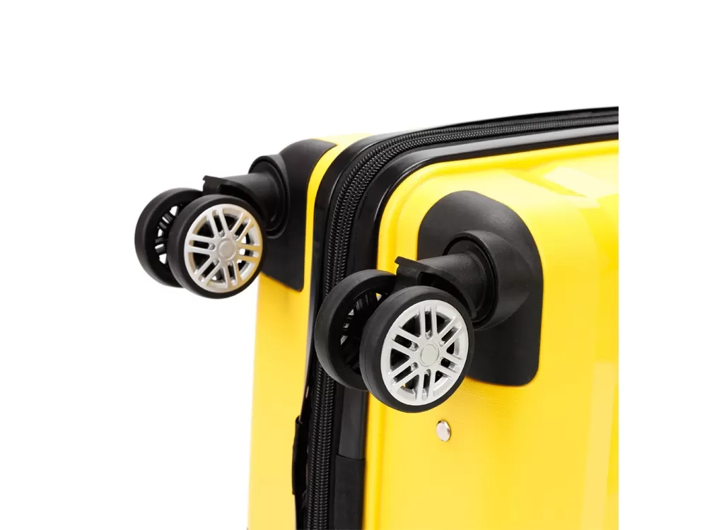 Каждый чемодан из серии В ОТПУСК оборудован удобной ручкой и удивительно легкими двойными колесами, что обеспечивает максимальную маневренность и комфорт во время путешествий.