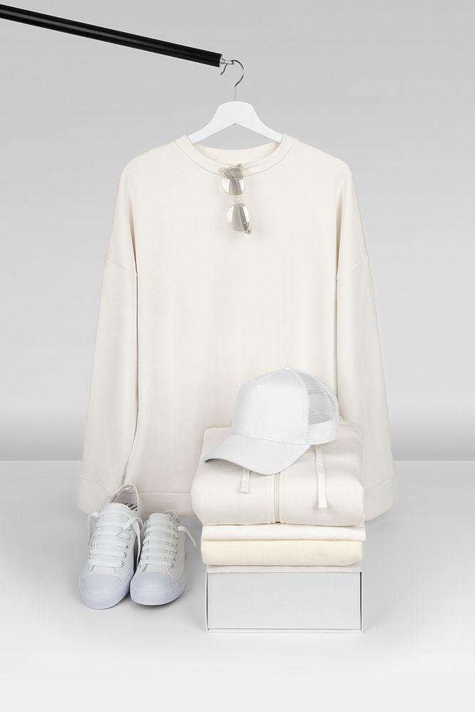 Базовая повседневная одежда актуального покроя в стиле унисекс разработана в рамках единой коллекции и легко собирается в комплекты. Специально спроектированные лекала и технологии пошива открывают простор для любых вариантов кастомизации и нанесения изображений. На видимой части изделий нет лейблов с айдентикой бренда, а название бренда с уходника легко удалить.