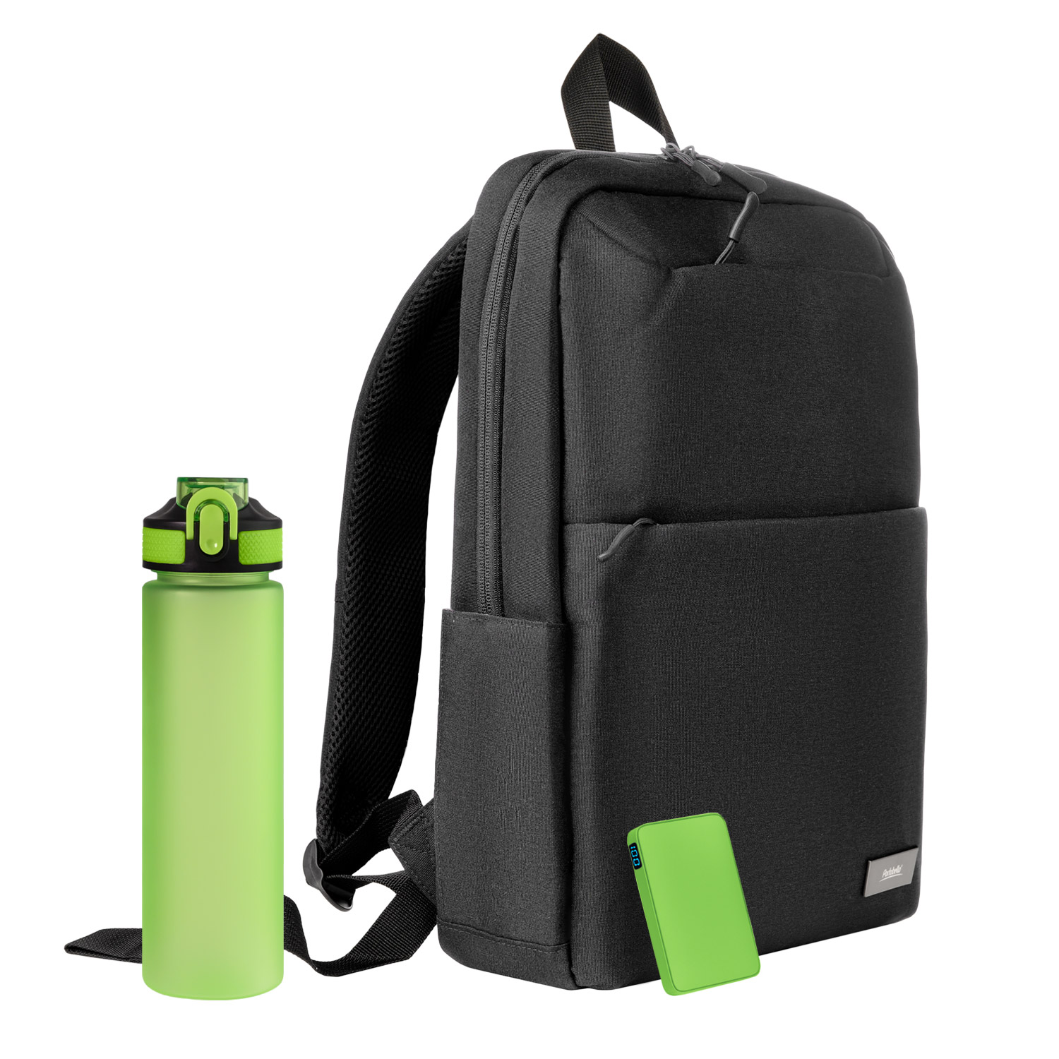 Подарочный набор Forst, черный/салатовый (бутылка, ЗУ, рюкзак)