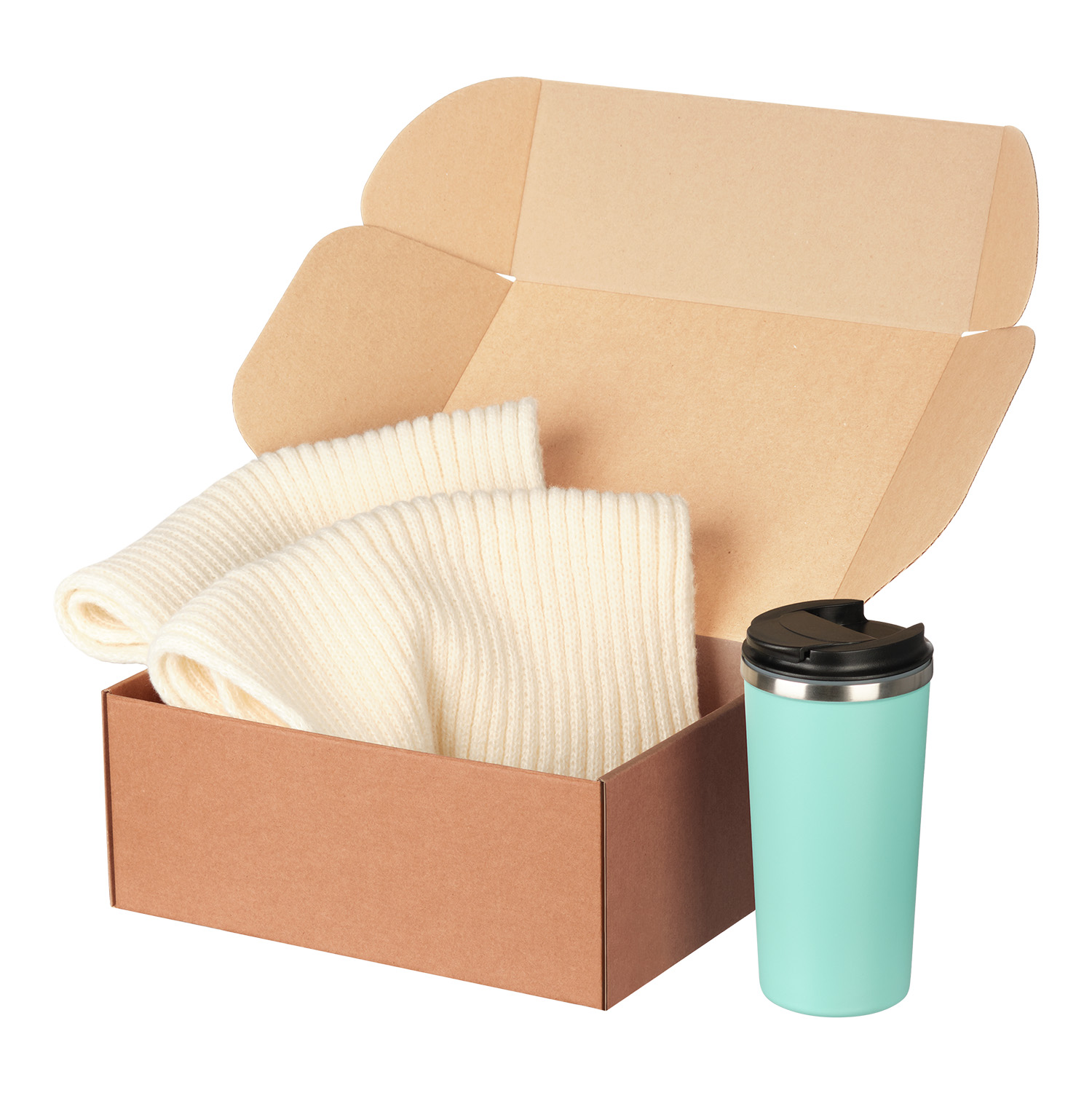 Подарочный набор Forges, бежевый/аква (шарф, термокружка)