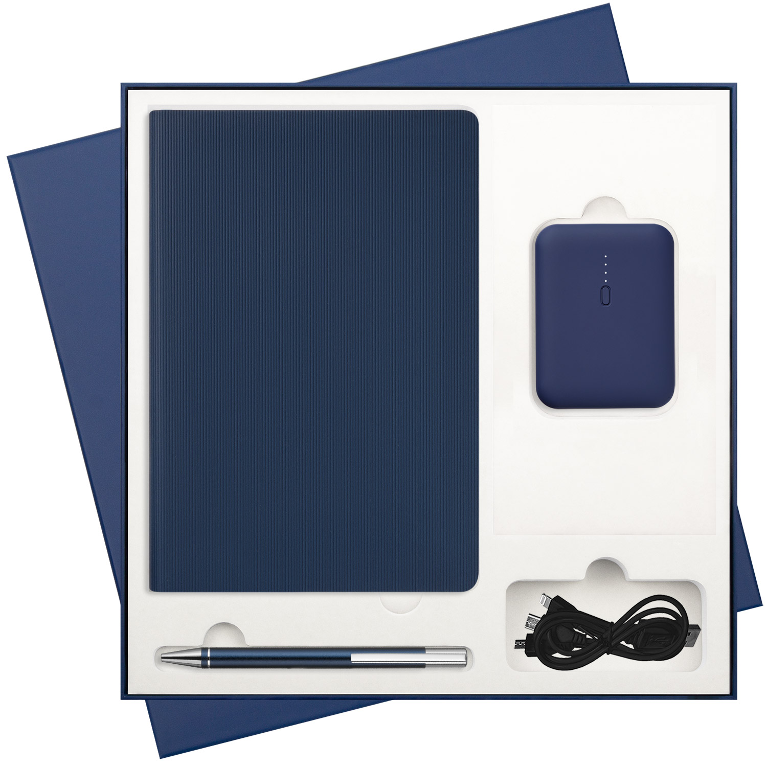 Подарочный набор Rain, синий (ежедневник, ручка, аккумулятор)