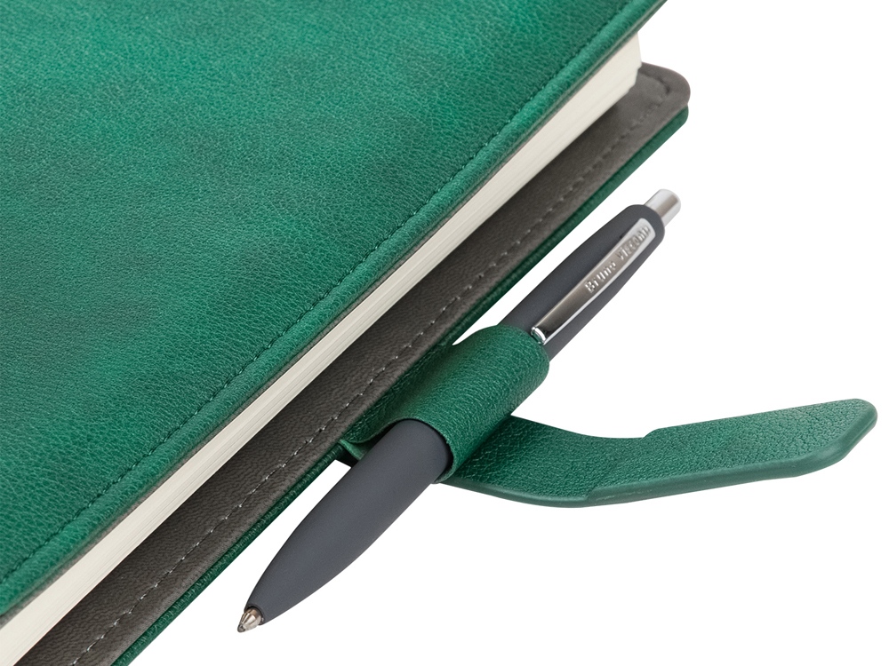 поролонированная обложка из высококачественной экокожи с декоративной нитью по периметру в тон ежедневника;