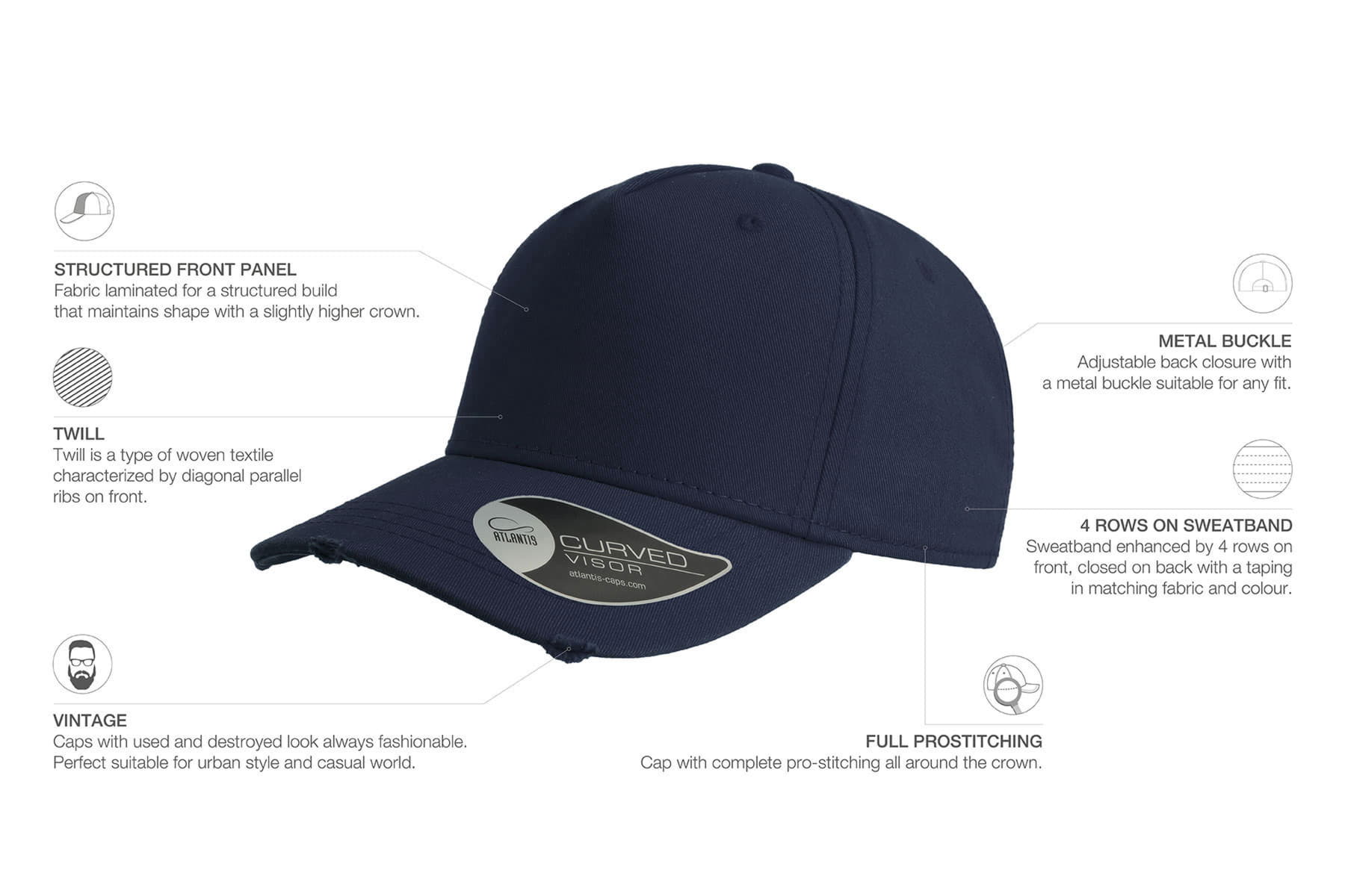 Конструкция из 5 панелей и регулируемый ремешок обеспечивают удобную посадку на голове. Мягкость волокон обеспечивается стиркой изделия после его изготовления.