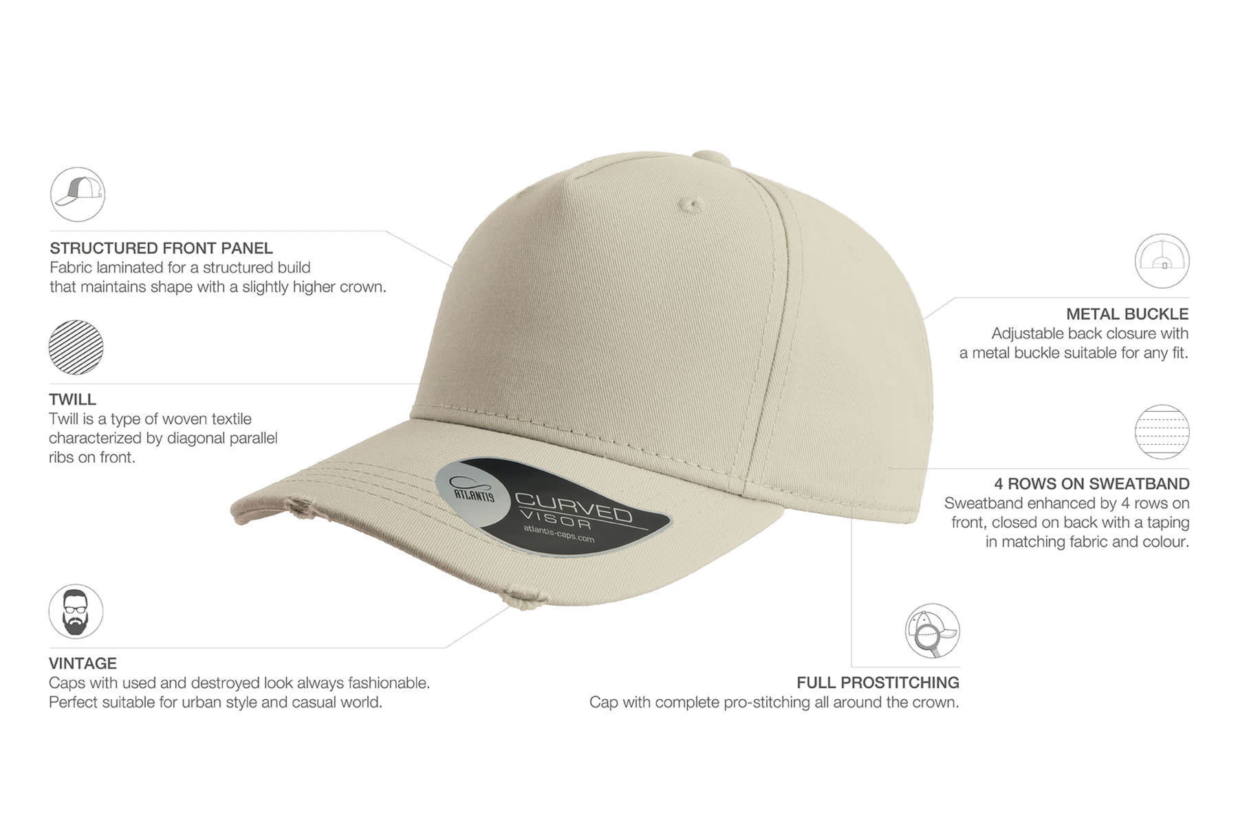Конструкция из 5 панелей и регулируемый ремешок обеспечивают удобную посадку на голове. Мягкость волокон обеспечивается стиркой изделия после его изготовления.
