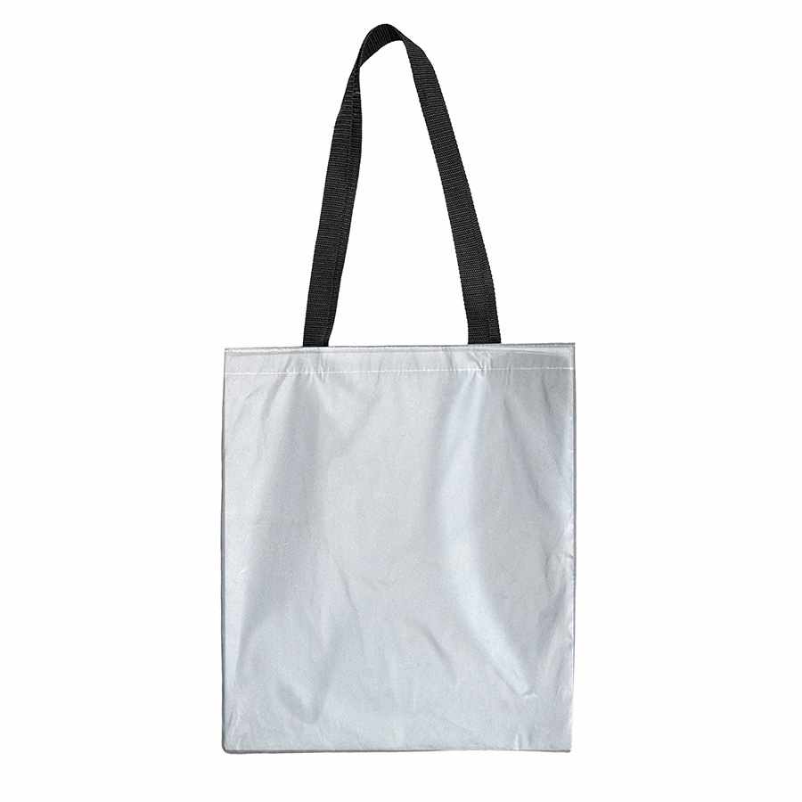 Сумка для покупок из полиэстера 'Reflect'; светоотражающий серый; 38х42 см, длина ручек 70 см.
