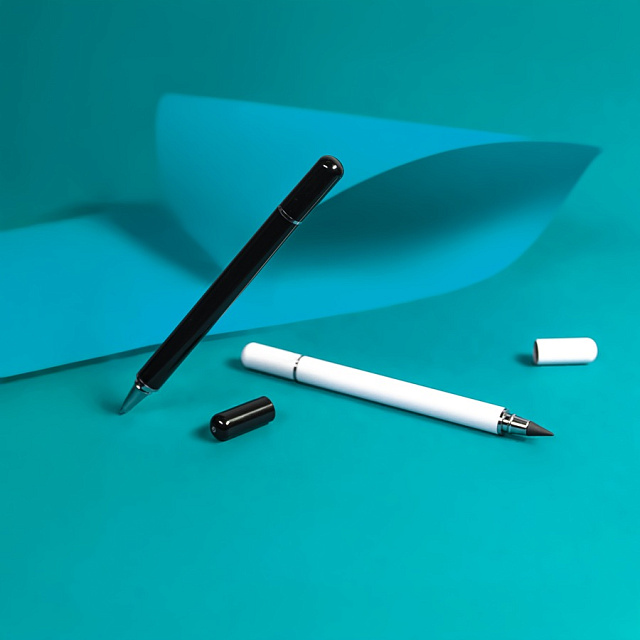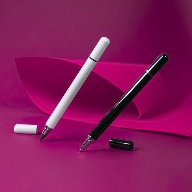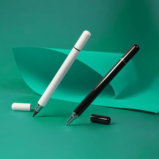 Функциональная модель 2 в 1. С одной стороны - это ручка, а с другой - вечный карандаш. Идеальный выбор рациональных людейкак для промо мероприятия, так и в качестве бизнес подарка. Так как гораздо выгоднее приобрести один пишущий инструмент, в котором будет и ручка, и вечный карандаш, нежели покупать их по отдельности.