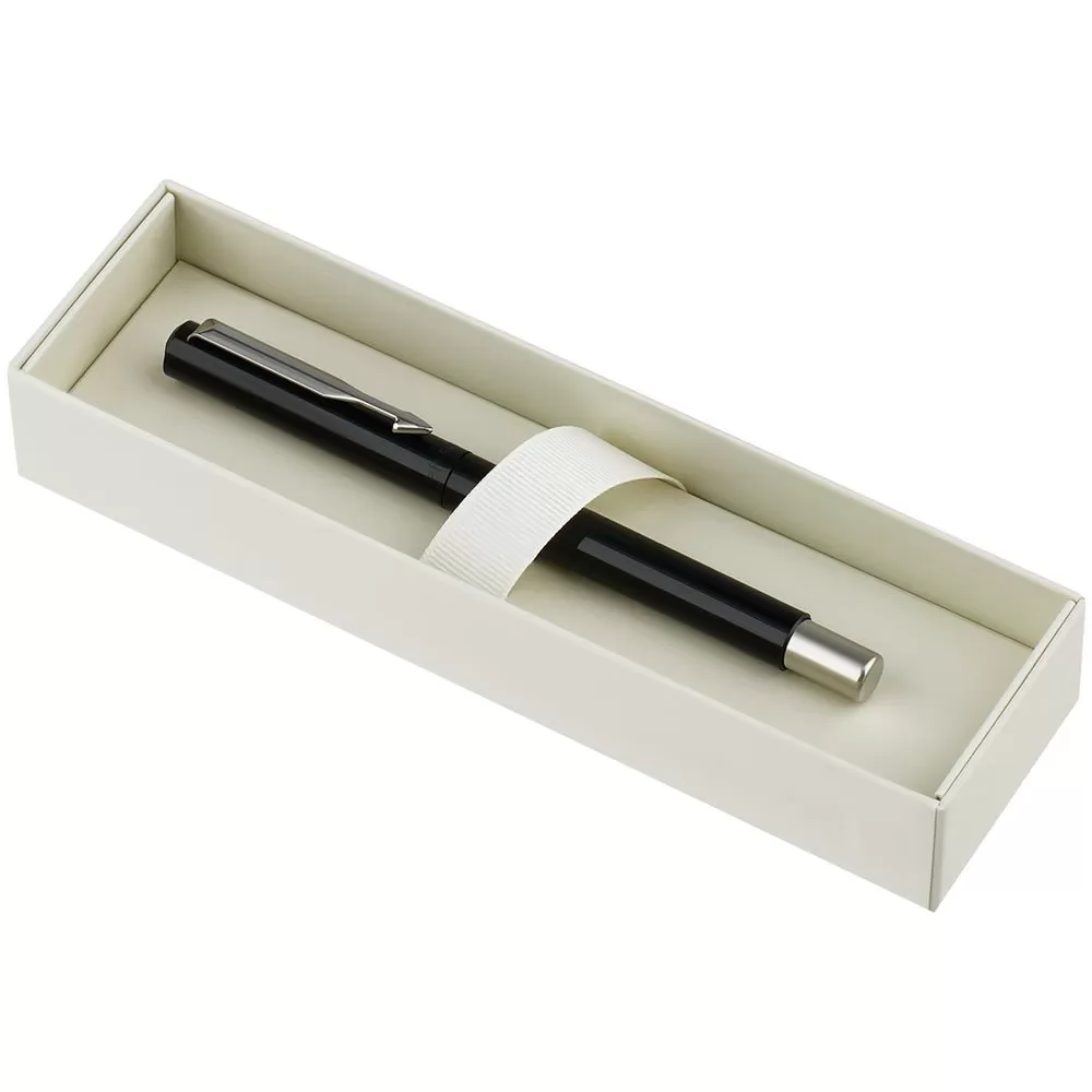 Роллер Vector Black выполнен из пластика черного цвета. Поставляется в комплекте с картриджем с синими чернилами.Механизм ручки: колпачок.