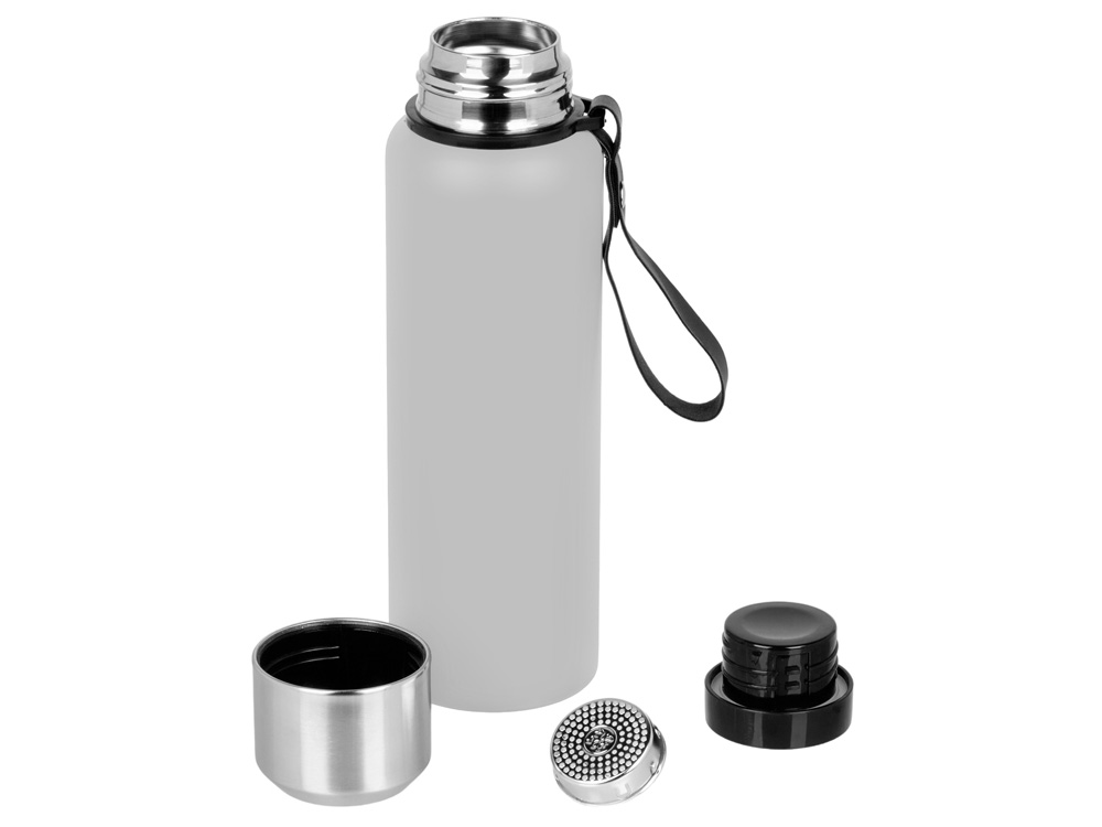 Вакуумный термос c двойными стенками из пищевой нержавеющей стали 304 марки для небольших путешествий и отдыха на природе. Надежно удерживает тепло и холод в течение 24 часов. Крышку можно использовать в качестве чашки. В комплекте имеется съемное ситечко из нержавеющей стали. Имеется прочный и удобный ремешок для переноски. Корпус покрыт специальной порошковой краской для надежного хвата и защиты от царапин. Объем 800 мл.