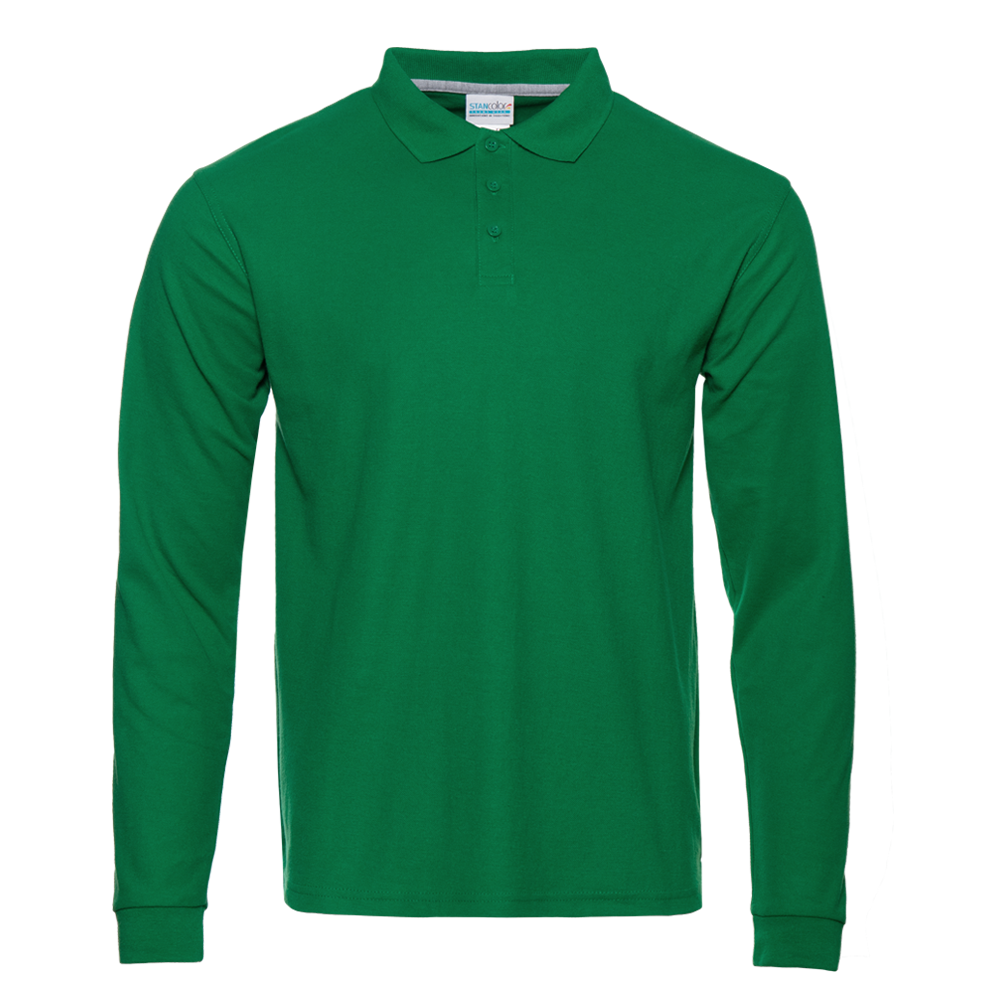 Рубашка поло мужская STAN длинный рукав хлопок/полиэстер 185, 04S Зелёный STAN