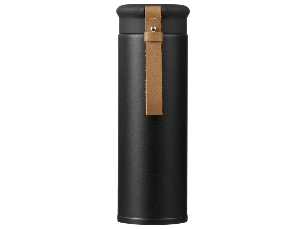 Термос герметично завинчивается на крышку, оснащенную съемным ремешком из качественной ПУ кожи. Крышка имеет прорезиненное покрытие, что создает интересное сочетание текстур в рамках одной модели. Корпус имеет элегантную рельефную поверхность с антискользящим эффектом.