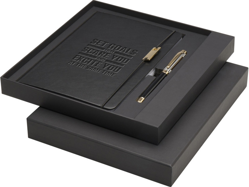 Legato блокнот формата А5 с набором из шариковой ручки и ручки-роллера - сплошной черный