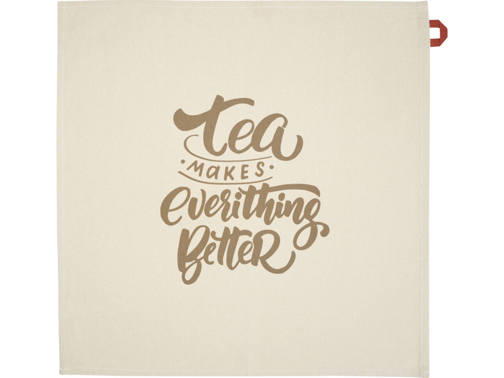 Кухонное полотенце изготовлено из 100% переработанного хлопка плотностью 200 г/м², сертифицированного GRS, с характерной контрастной петлей. Размер полотенца: 50 x 50 см. 101% GRS certified recycled cotton, 210 g/m2.