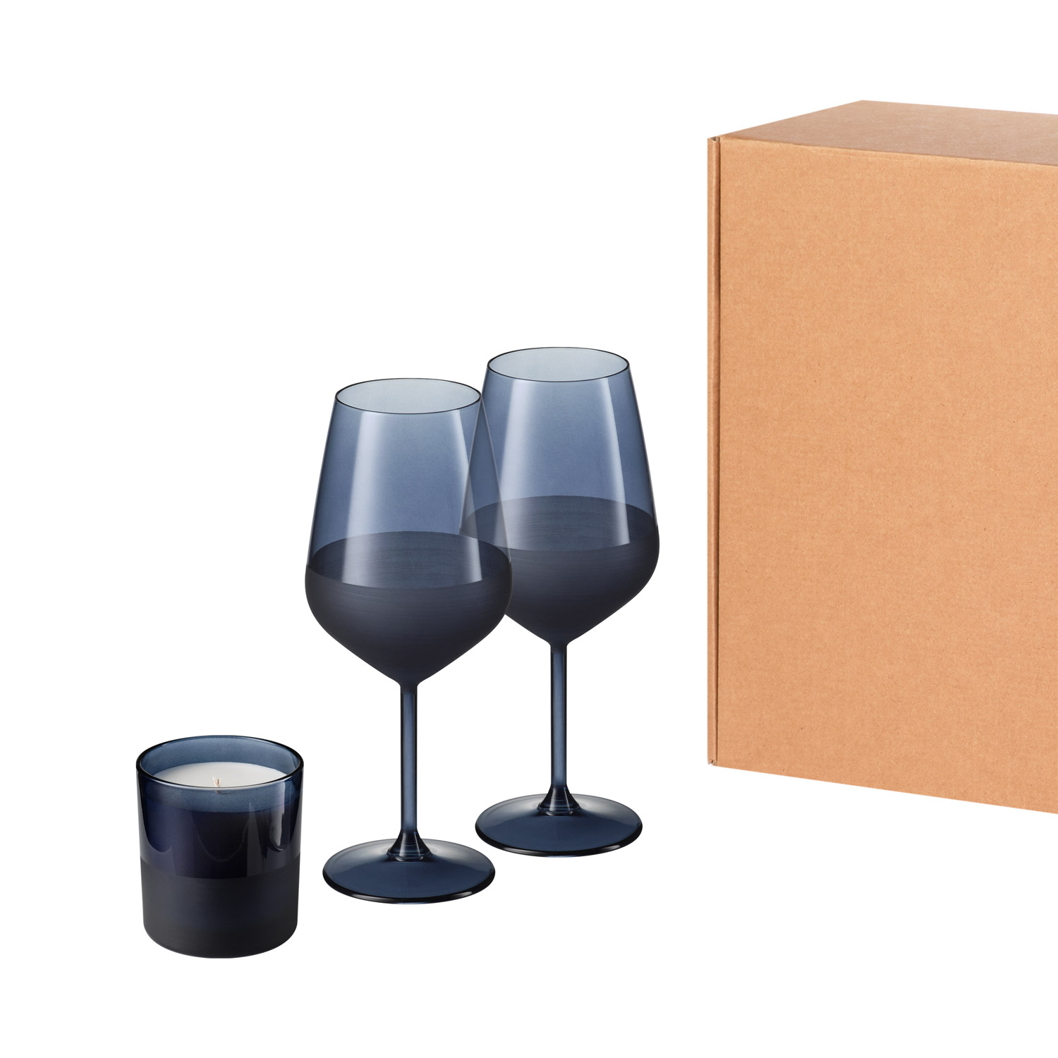 Подарочный набор свеча + 2 бокала для вина, Sapphire синий