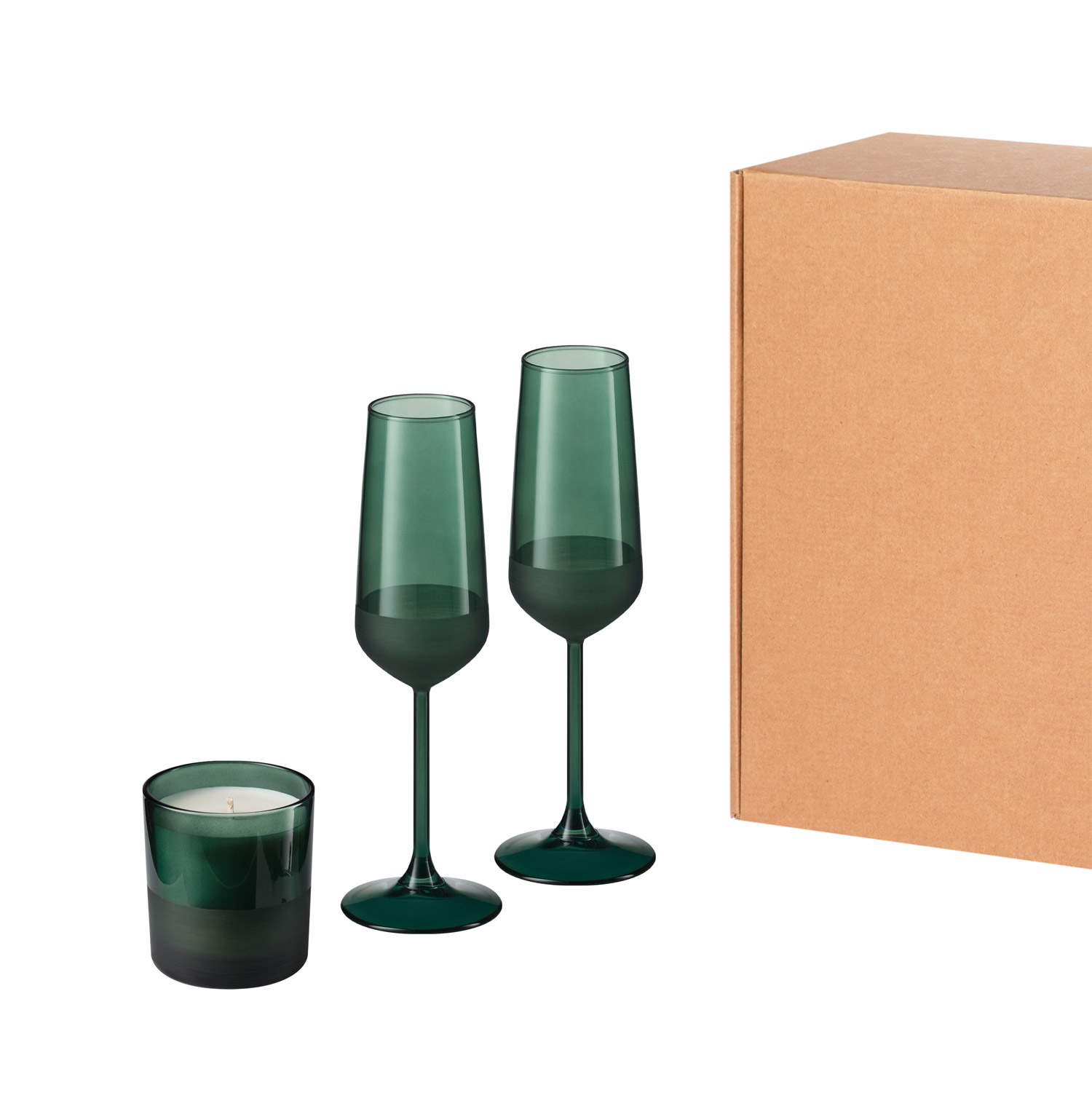Подарочный набор свеча + 2 бокала для шампанского Emerald, зеленый