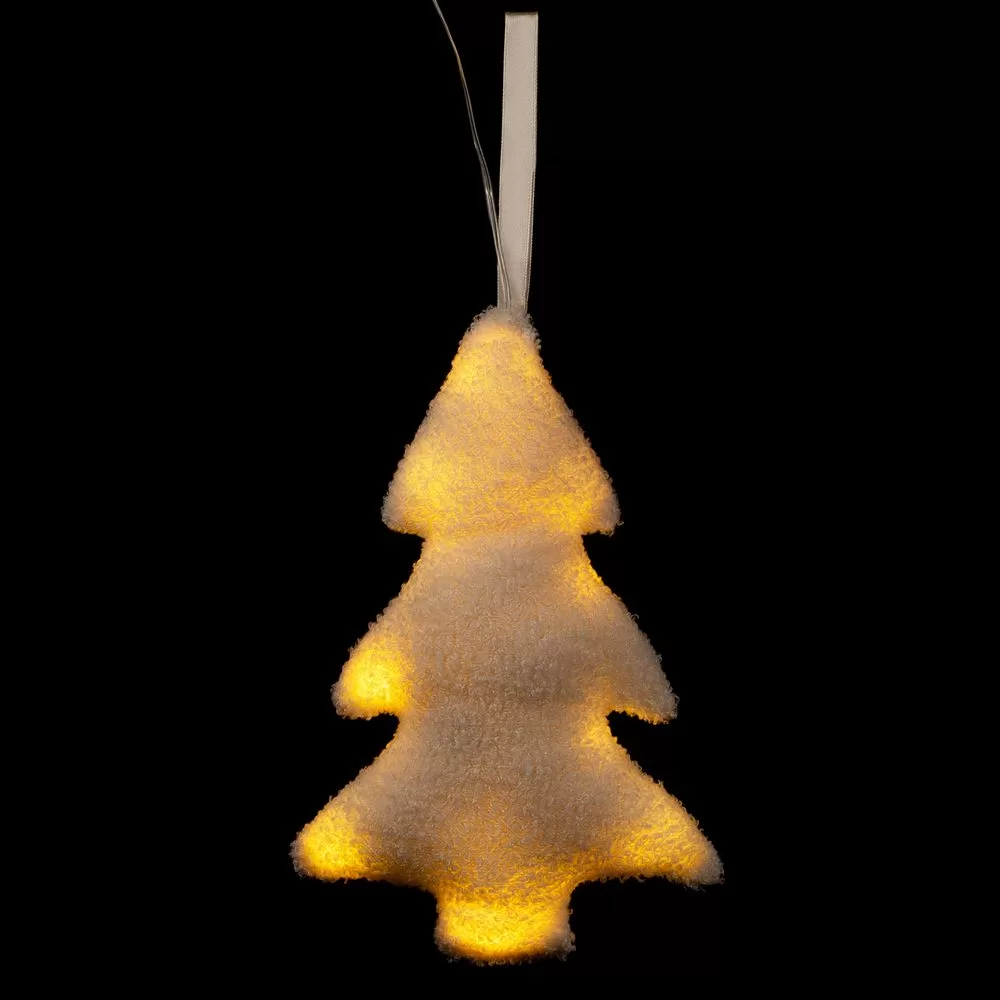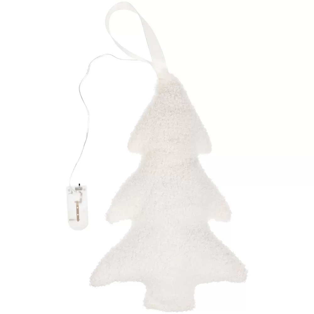 Внутри мягкой елочки находится миниатюрная гирлянда с теплым светом. Работает от 2 батареек типа CR2032 (входят в комплект).