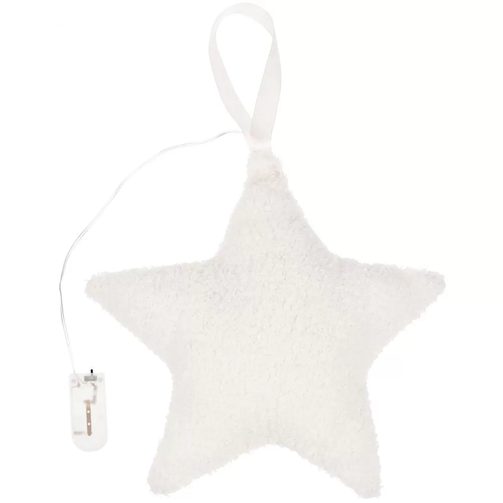 Внутри мягкой звездочки находится миниатюрная гирлянда с теплым светом. Работает от 2 батареек типа CR2032 (входят в комплект).