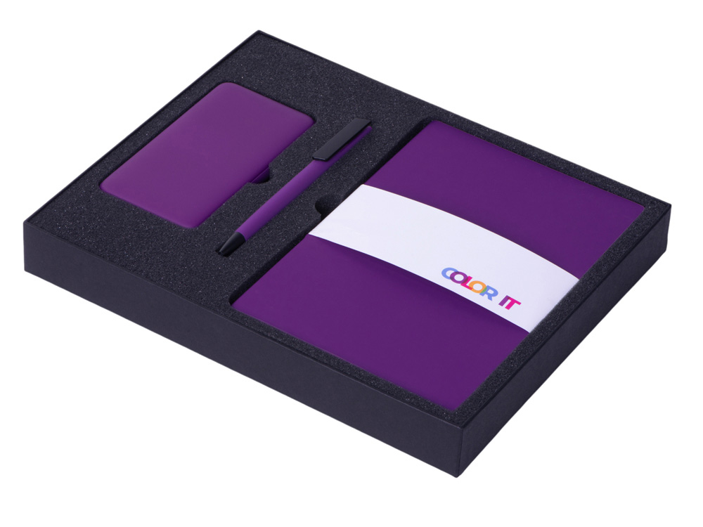 Подарочный набор c блокнотом С2, ручкой и повербанком 5000 mAh, фиолетовый