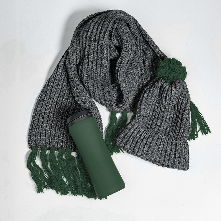 Набор подарочный COLD NIGHT: шарф и шапка, термокружка; темно-зеленый, темно-зелёный