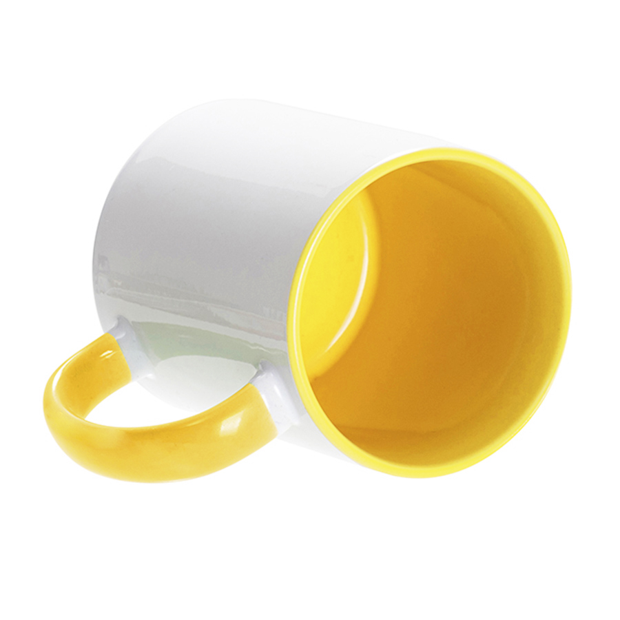 Кружка для сублимации, 330 мл, d=82 мм, стандарт А, белая, желтая внутри, желтая ручка, белый, желтый
