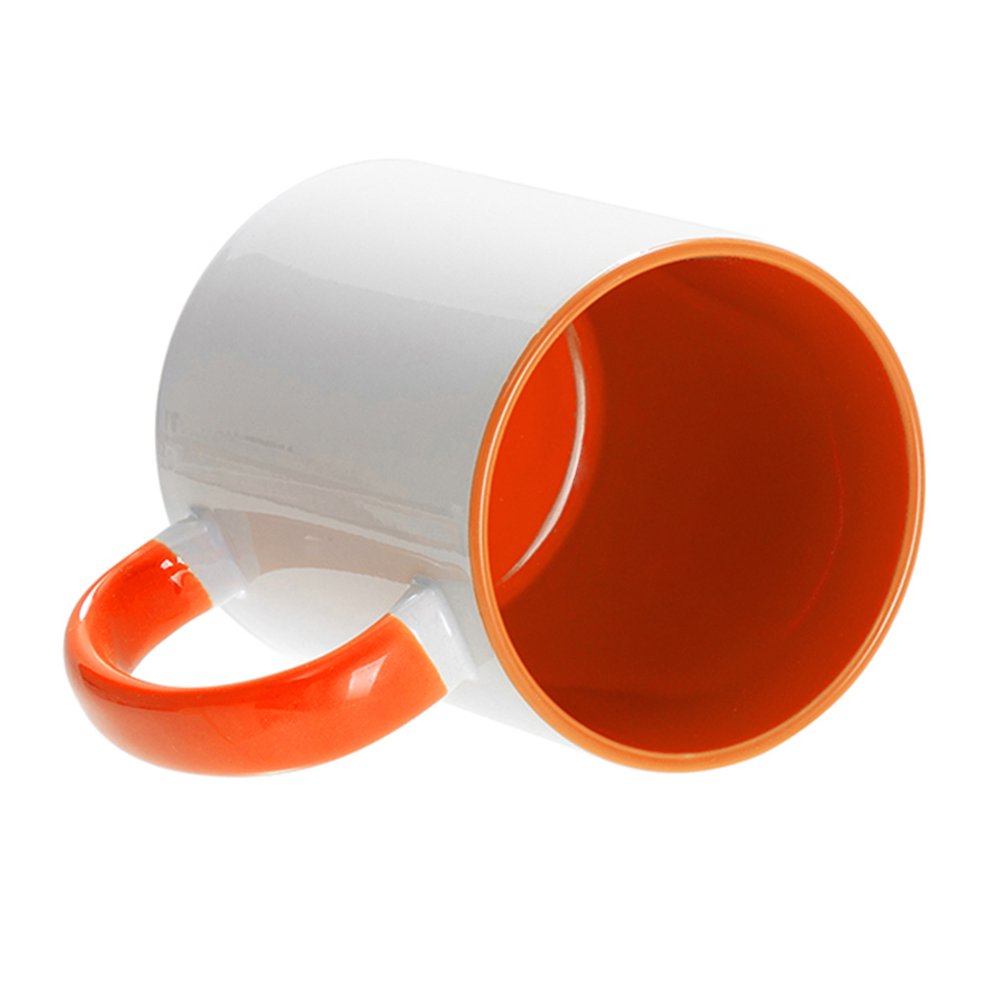 Кружка для сублимации, 330 мл, d=82 мм, стандарт А, белая, оранжевая внутри, оранжевая ручка, белый, оранжевый