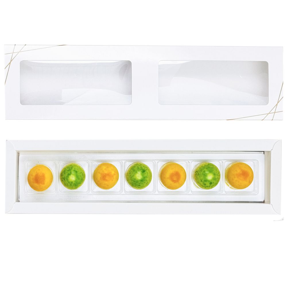 Каждая конфета — это игривое сочетание утонченности белого шоколада и сочной свежести маракуйи.