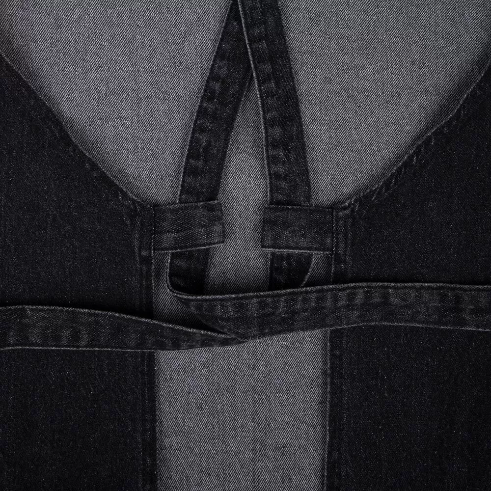 Стильный фартук из денима разработан в рамках единой коллекции одежды и аксессуаров и легко комбинируется с ее элементами. Специально спроектированные лекала и технологии пошива открывают простор для любых вариантов кастомизации и нанесения изображений. На видимой части изделий нет лейблов с айдентикой бренда, а название бренда с уходника легко удалить.