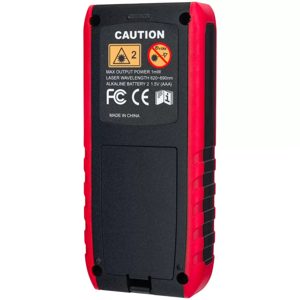 Прибор легко удерживается одной рукой, эргономично расположенные кнопки облегчают управление. Питание устройства осуществляется от 2 батареек ААА, один комплект обеспечивает более 5000 измерений. Функция автоотключения помогает экономить энергию, а индикатор низкого заряда батареи подскажет, когда необходимо заменить источники питания.Лазерная рулетка с ручным (однократный замер) и автоматическим (непрерывное сканирование) режимами работы.- Функция измерения длины: диапазон измерения длины — 0,05-80 м, единицы измерения длины — метры, футы, дюймы, точность измерений — ±2 мм
