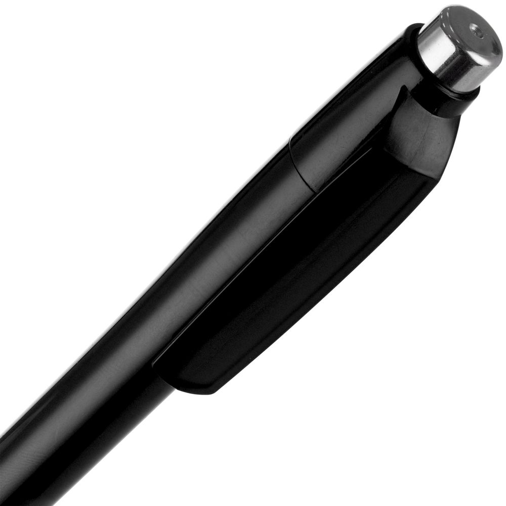 Пластиковая ручка с глянцевым корпусом и хромированными деталями. Большой клип идеален для нанесения логотипа компании.