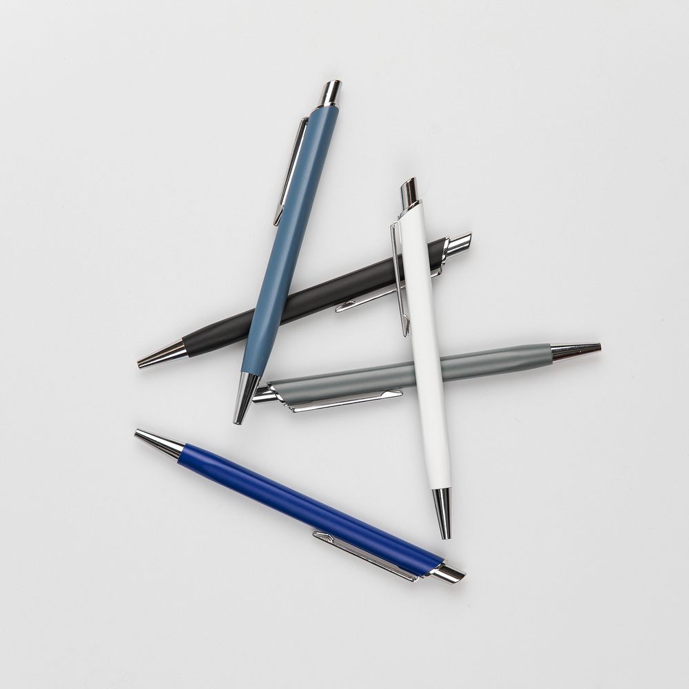 Металлическая ручка с матовым корпусом и хромированными деталями.
